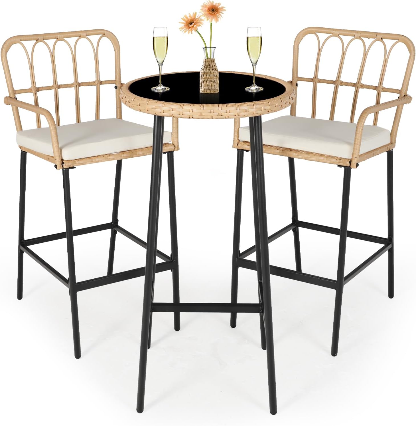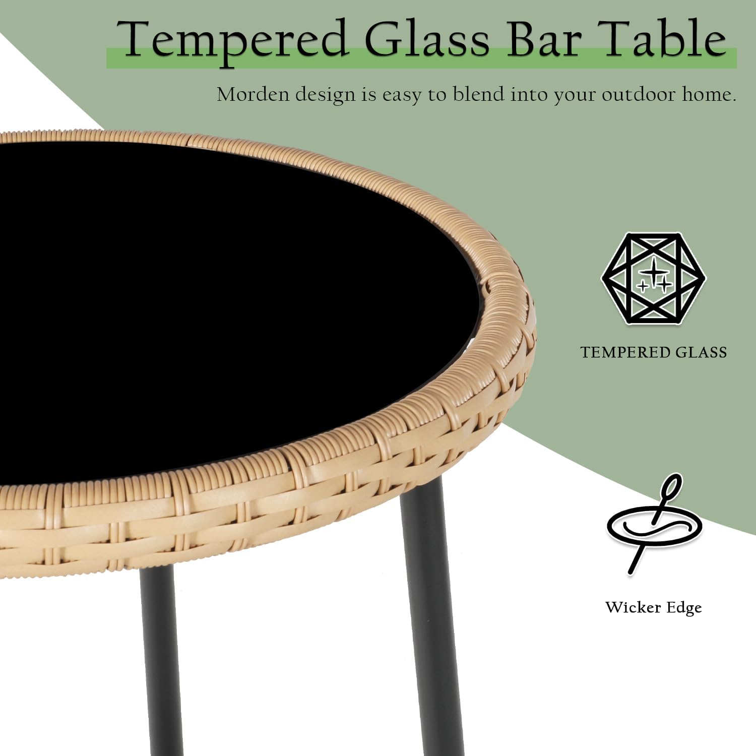 - ELEGANT MODERN STYLE:The bar height patio bistro set will give you a wider view. Elegant modern look and exquisite craftsmanship can ideally decorate your home and patio. Suitable for any outdoor space, including bistro, lawn, garden, backyard, porch, patio, poolside
