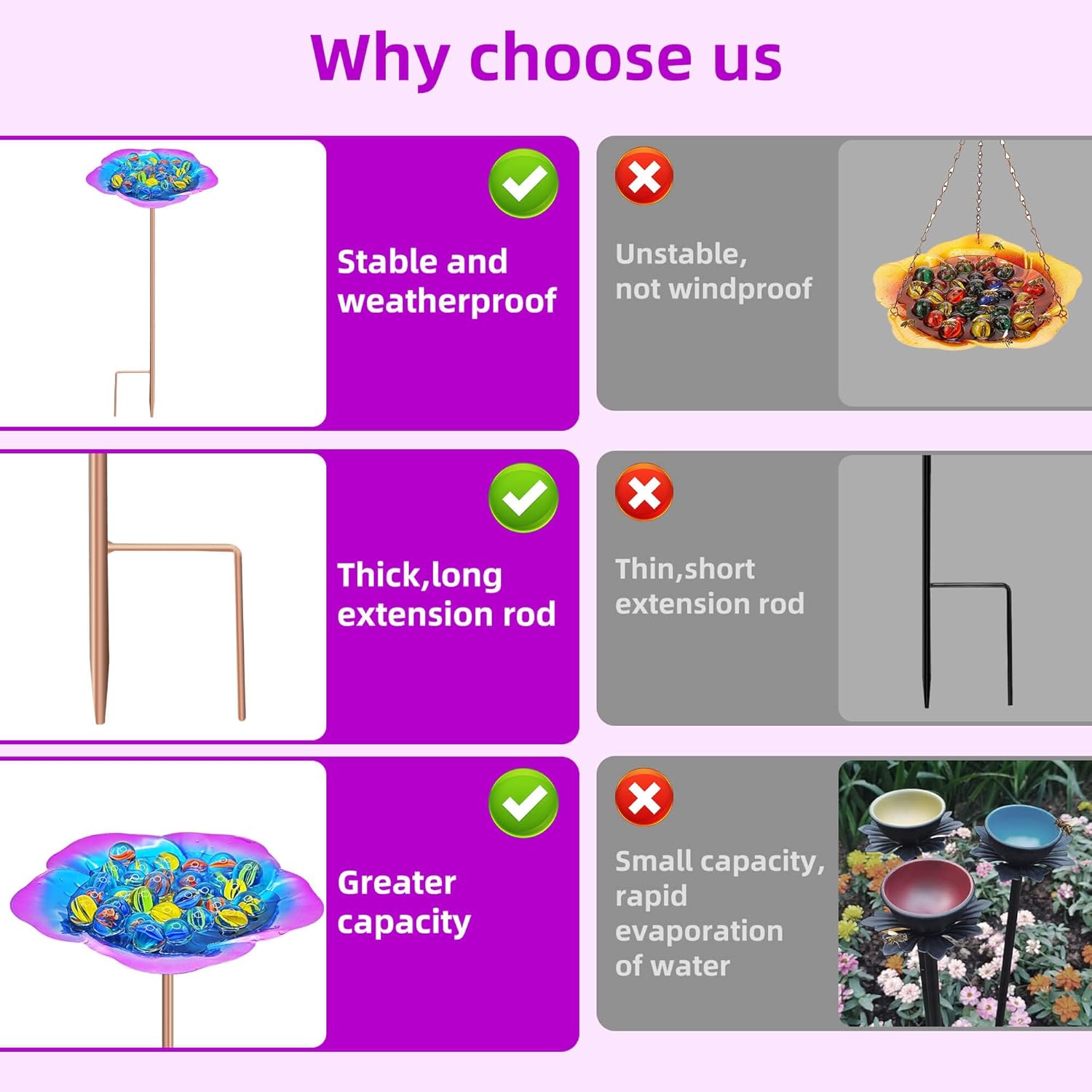 - 😘【More Stable and Not Afraid of Wind and Rain】:Compared with hanging bee feeders, our standing bee feeders for outside is more stable,stable prong base deep into the soil,will not shake even in bad windy weather. Keeps the bees safe to drink.Bee watering station for garden is made of metal and lasts for years.