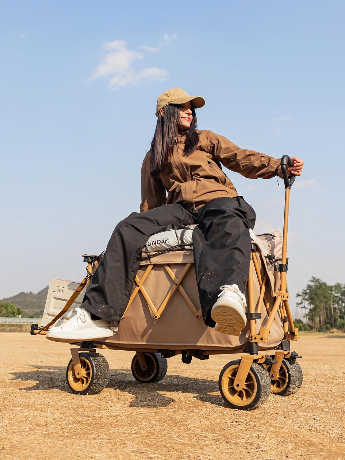 - 【Built-in Dual Bearings】The dual-bearing design provides maximum load capacity and safety, allowing for smooth rolling on muddy terrain, grassy areas, and beaches. Even when children are seated in the collapsible wagon, they won't feel the bumps. It is also convenient for transporting pets. Moreover, both the collapsible wagon and the foldable wagon have the added feature of being easily folded, making them convenient to carry and store.