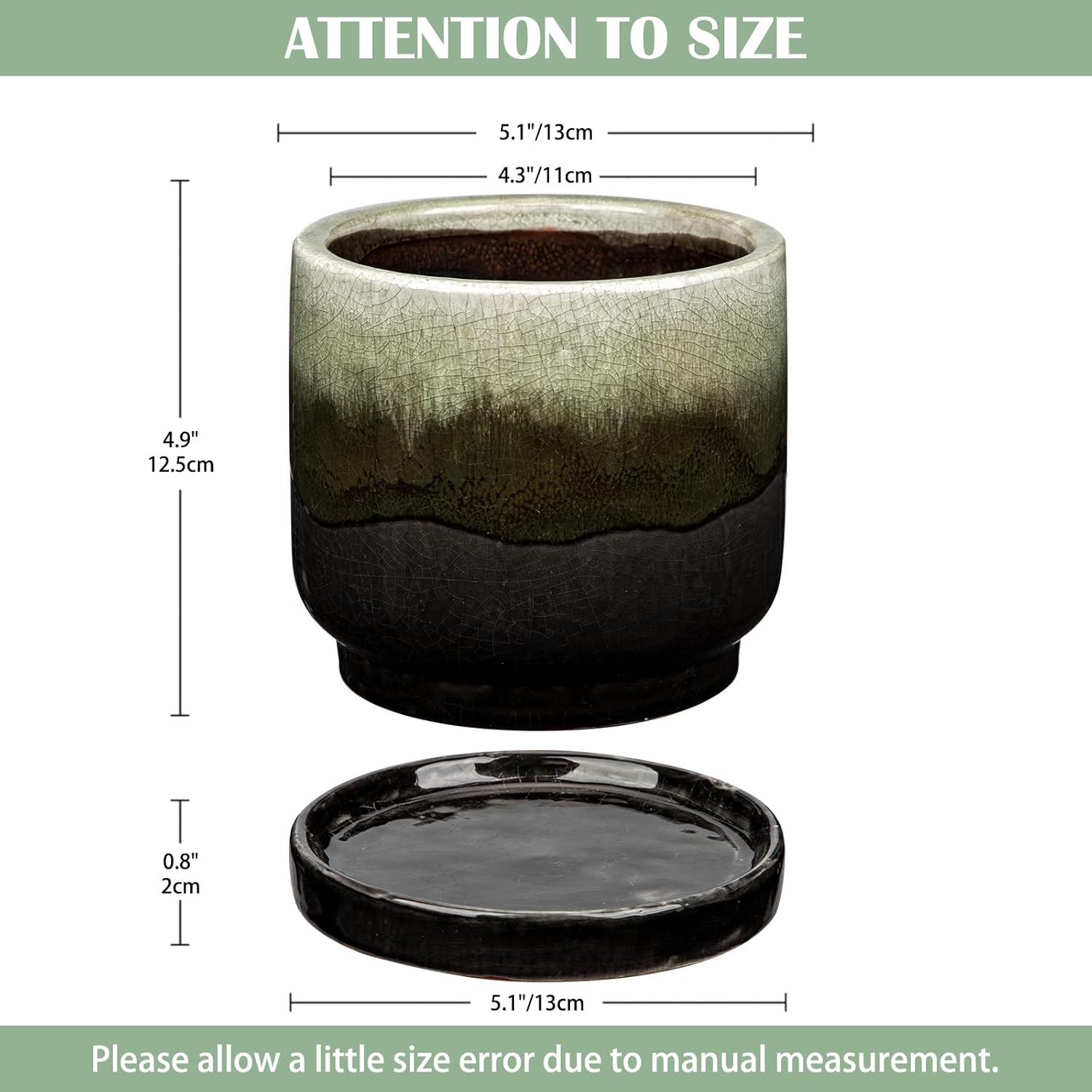 Oairse Ceramic Pot for Plants - 5.5 inch Small Planter with Drainage Hole and Saucers - Gradient Black Outdoor Indoor Flower Pot for Succulent, Cactus, Snake Plant, Herb