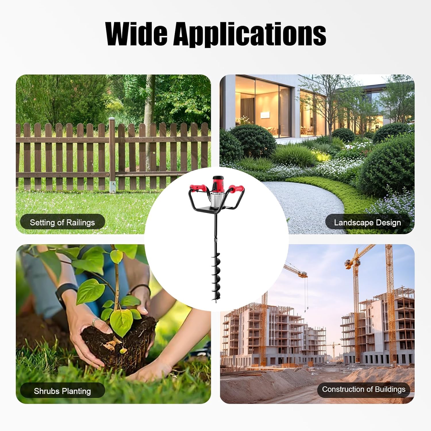 - HIGH ADAPTABILITY: This excavator can be equipped with augers up to 300 mm/11.81 inches in diameter, so you can install different auger sizes to suit your work. The 11.81-inch extension bar included in the package can be used with the auger to allow you to dig deeper, and it's long enough to allow you to save energy without bending over.