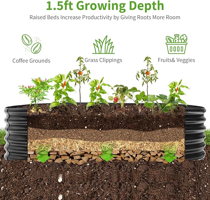 - Extra large capacity: The total dimensions of the raised garden bed are 96 "L x 48 "W x 18 "H and holds 359 gallons of soil. The extra large capacity provides plenty of growing space for planting vegetables, fruits, flowers and other plants.