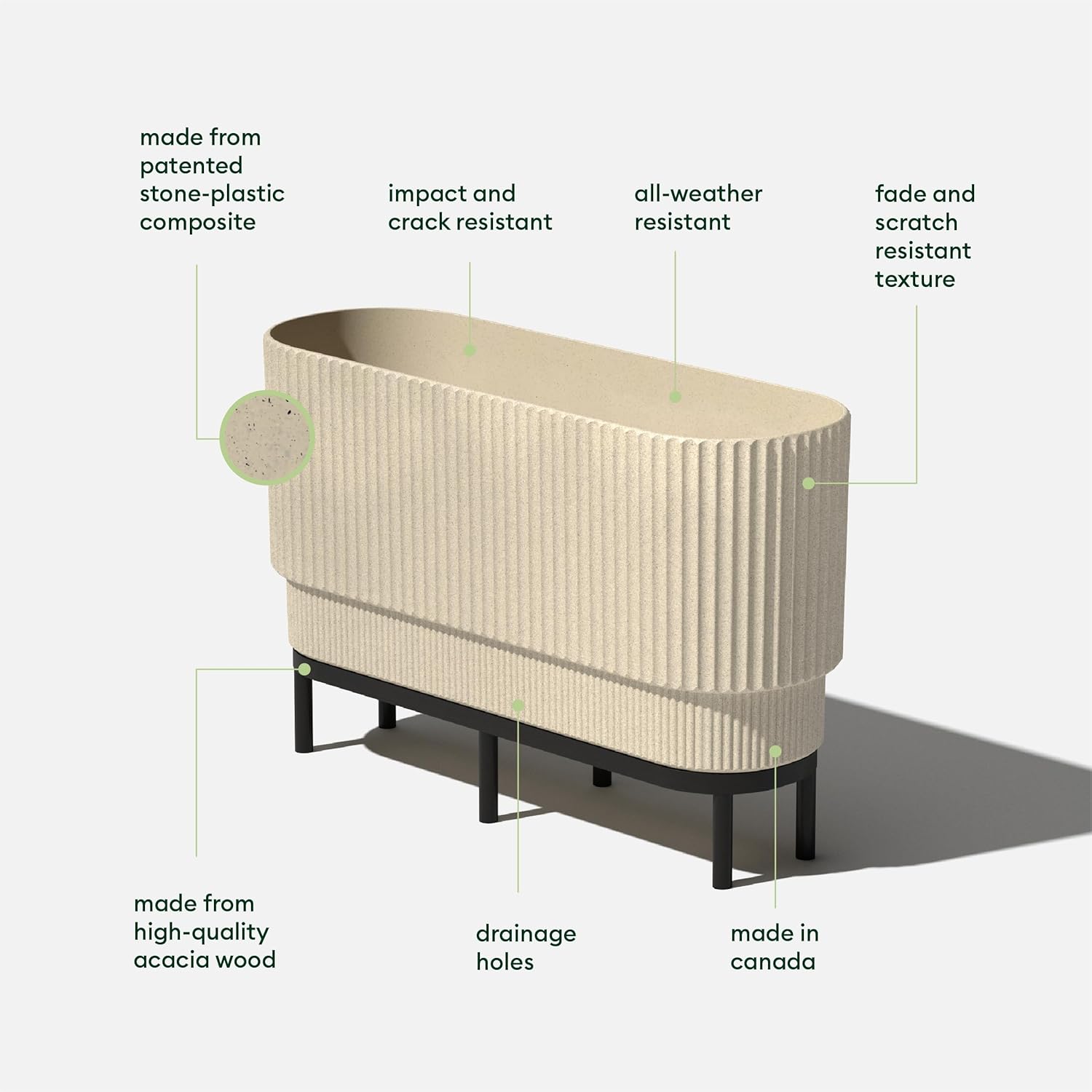 Veradek Demi Series Raised Long Planter for Indoor/Outdoor Use | Made from Plastic & Stone w/Wooden Stand | Modern Patio Décor for Flowers/Shrubs