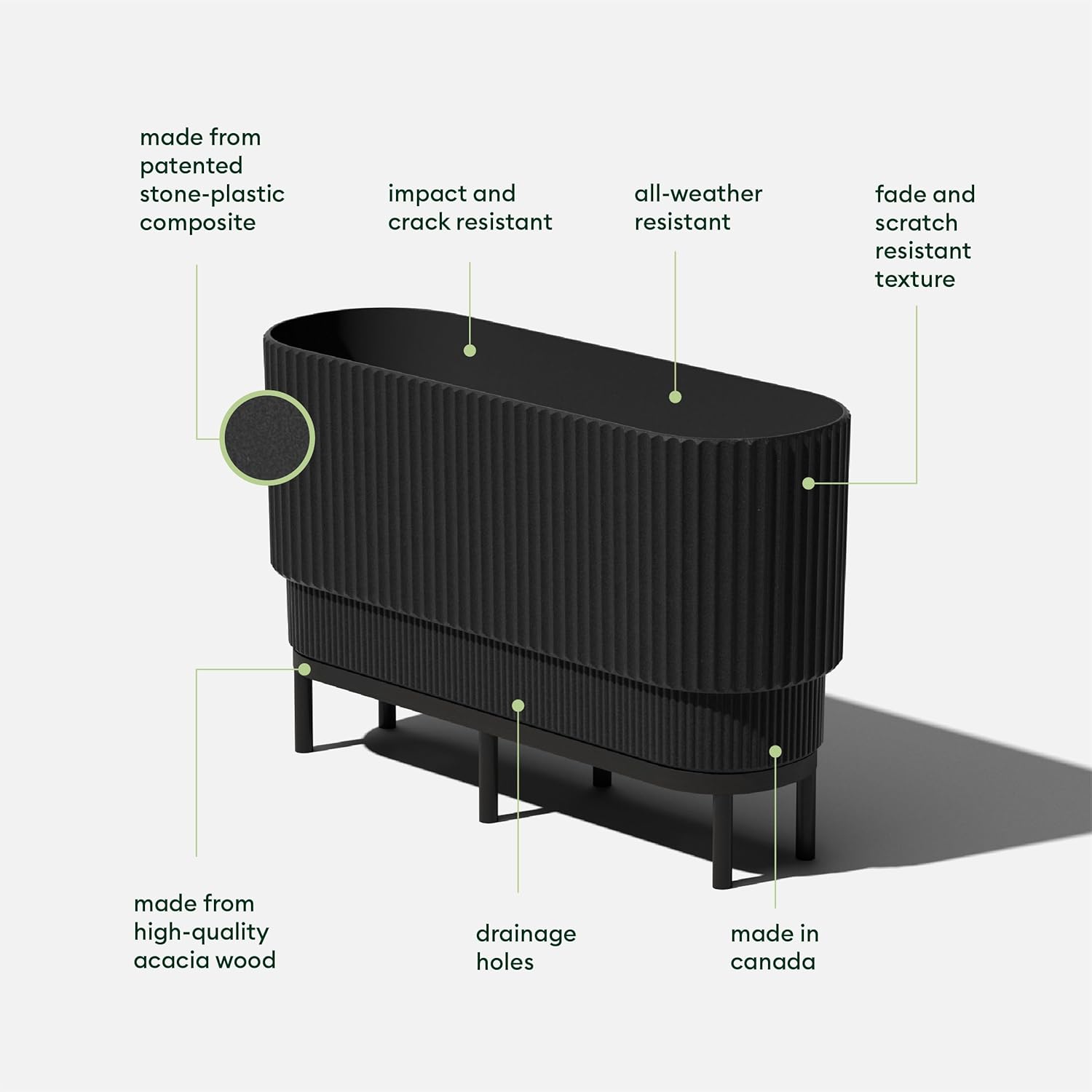 • DURABLE MATERIAL: Made from a patented plastic-stone composite, this fluted planter has a subtle textured finish and is all-weather resistant to cracks, scratches, UV and fading; perfect for hot or cold climates ranging from -20 to +120 degrees