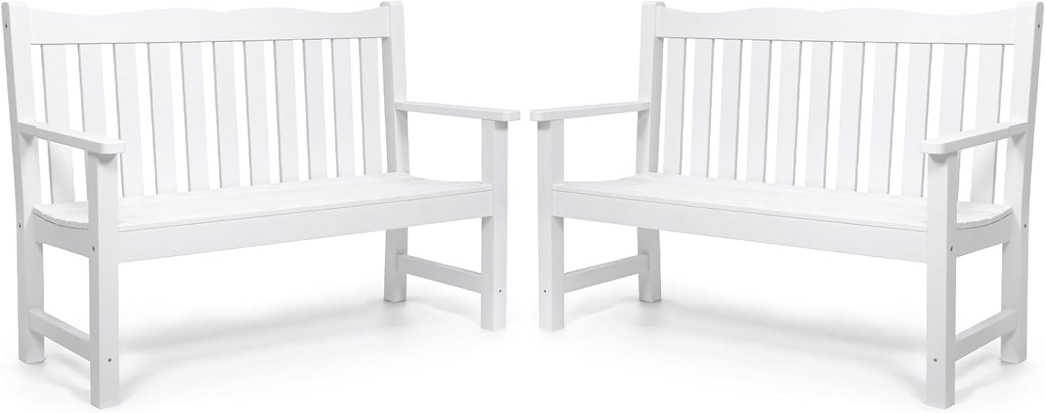 Garden Benches Set of 2, All-Weather HIPS Outdoor Bench with 800 lbs Weight Capacity, Never Rot or Fade, for Garden, Porch, Backyard, and Park, White
