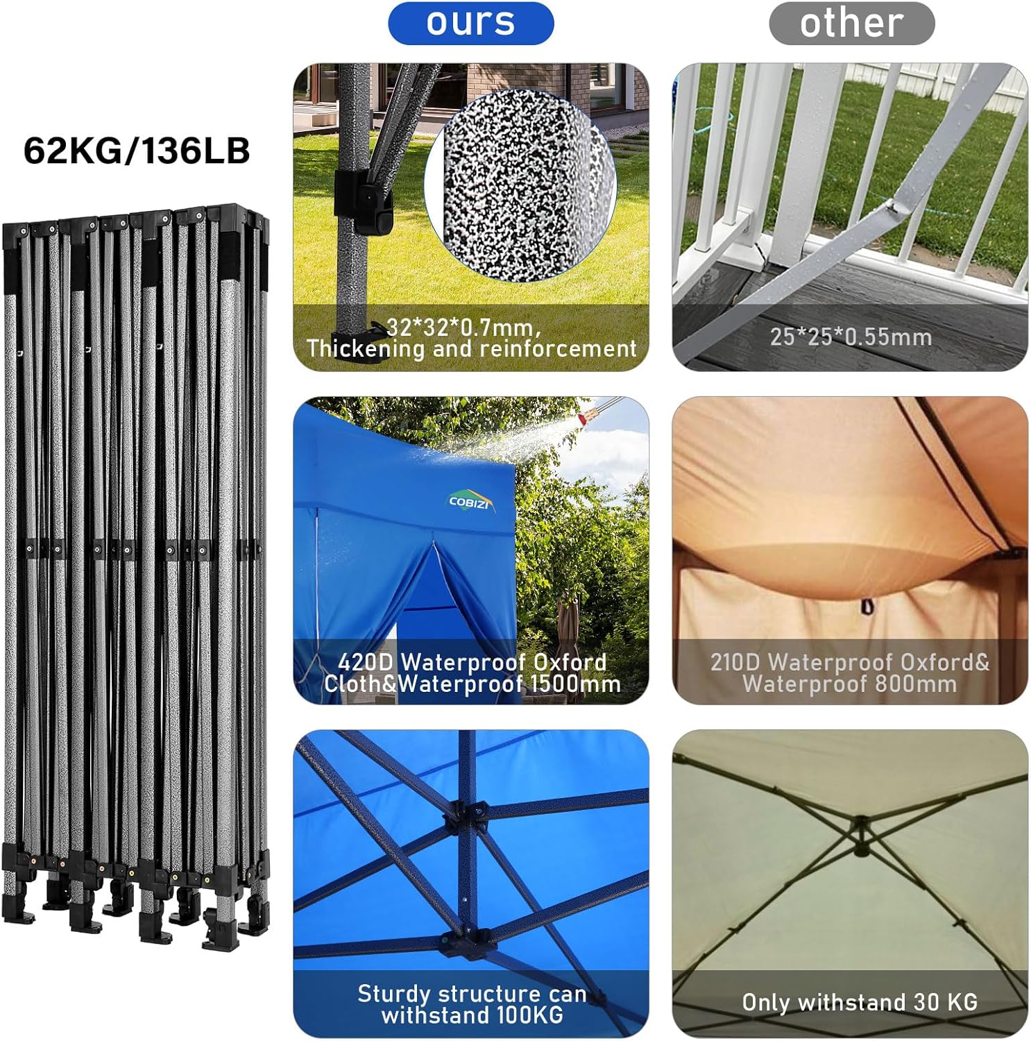 COBIZI 10x30 Pop up Canopy Tent 10x30 Canopy with Sidewalls, Heavy Duty Party Tent Tents for Parties, Foldable UPF 50+ Waterproof Commercial Easy up Canopy with Wheeled Bag, Blue(Frame Upgraded)