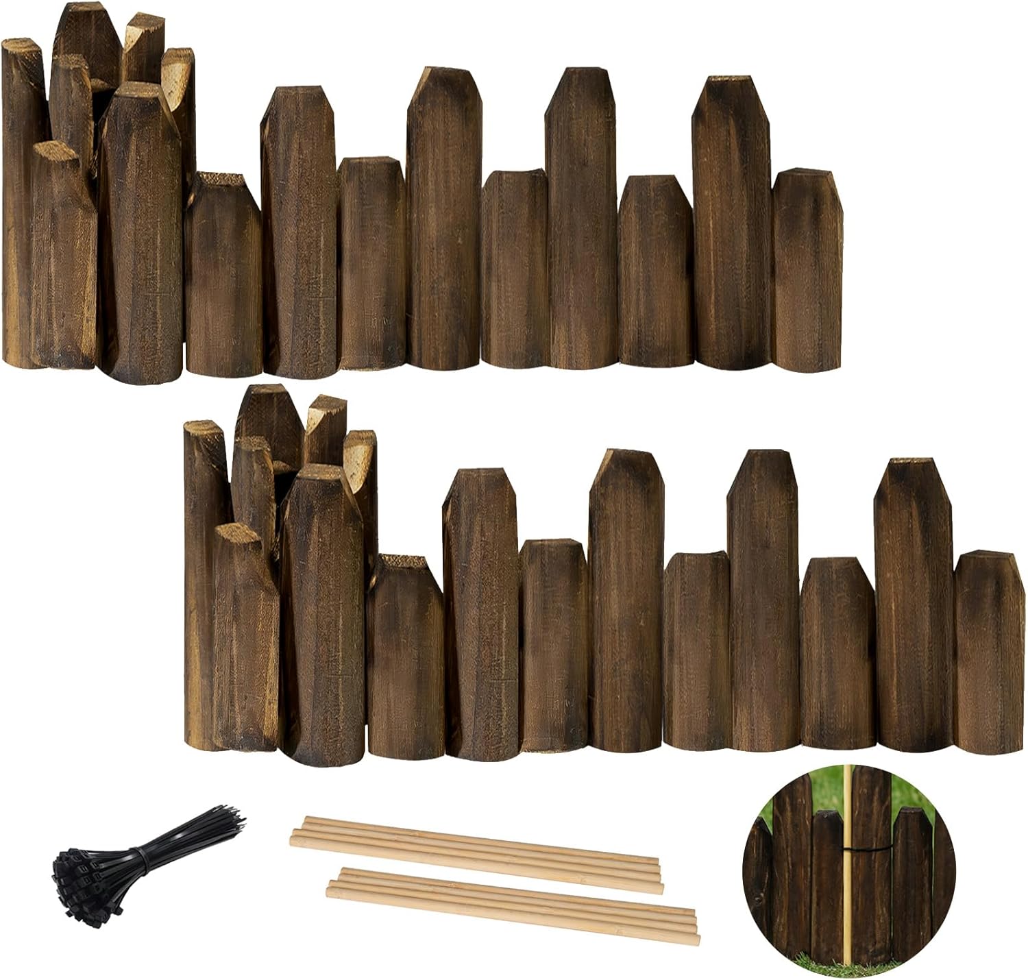 - Durable: The wood garden fence after a carbonized process and processing, the wood landscape edging border won't crack, warp, yellow, or splinter. No painting, staining or maintaining required.
