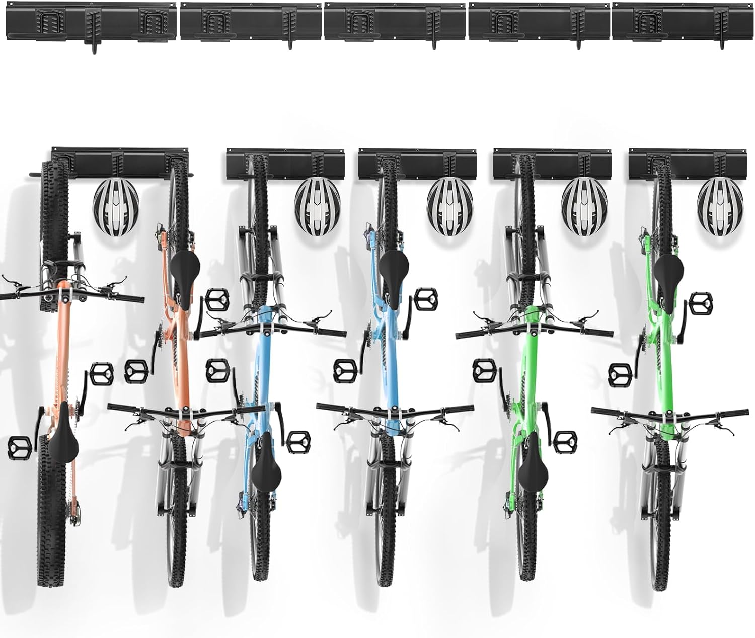 VEVOR Bike Storage Rack, 6 Bike Racks and 5 Helmets Hooks, Wall Mount Bike Storage Hanger, Home & Garage Organizer, Customizable for Various Bike Sizes, Adjustable Holder, Holds Up to 300 lbs, 85-inch