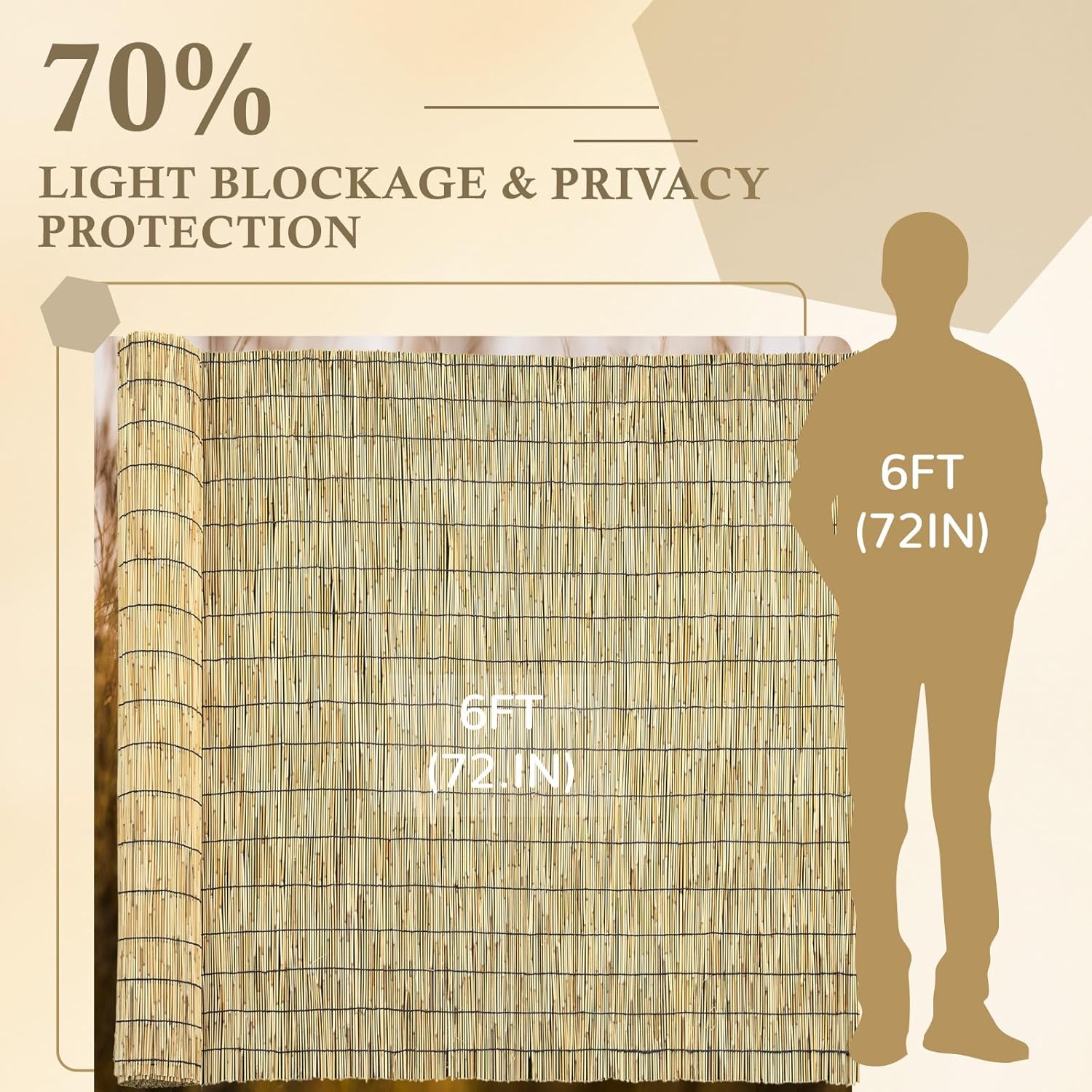 - Product Features: The bamboo reed fence rolls are 6 feet high and unfold to a length of 16.4 feet. They are designed to conceal unsightly bins, fences, or other objects, while also enhancing privacy for backyards, balconies, patios, or swimming pools