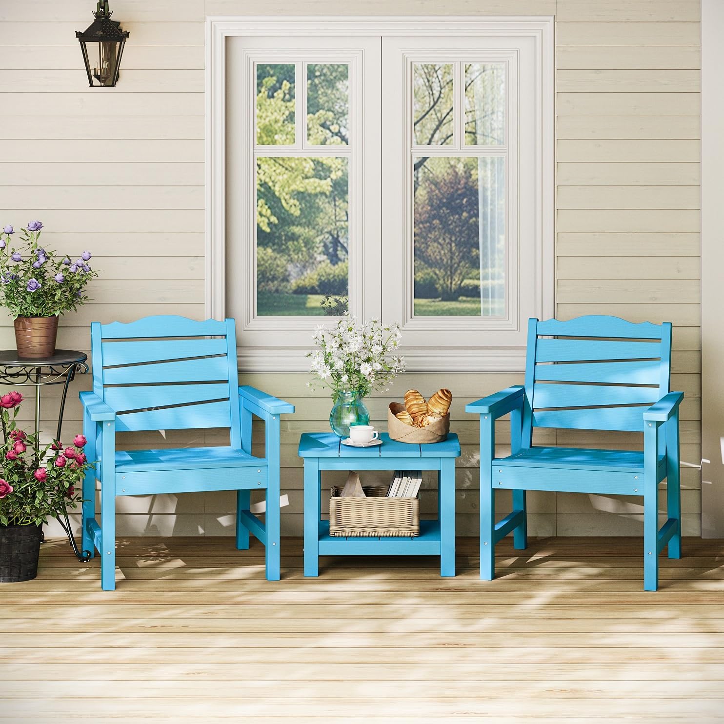 Patio Chairs Set of 2, Weatherproof HIPS Outdoor Dining Chair with Ergonomics Wide Seat, 400lbs Capacity Outdoor Chairs for Garden, Porch, Lawn & Backyard, Lake Blue