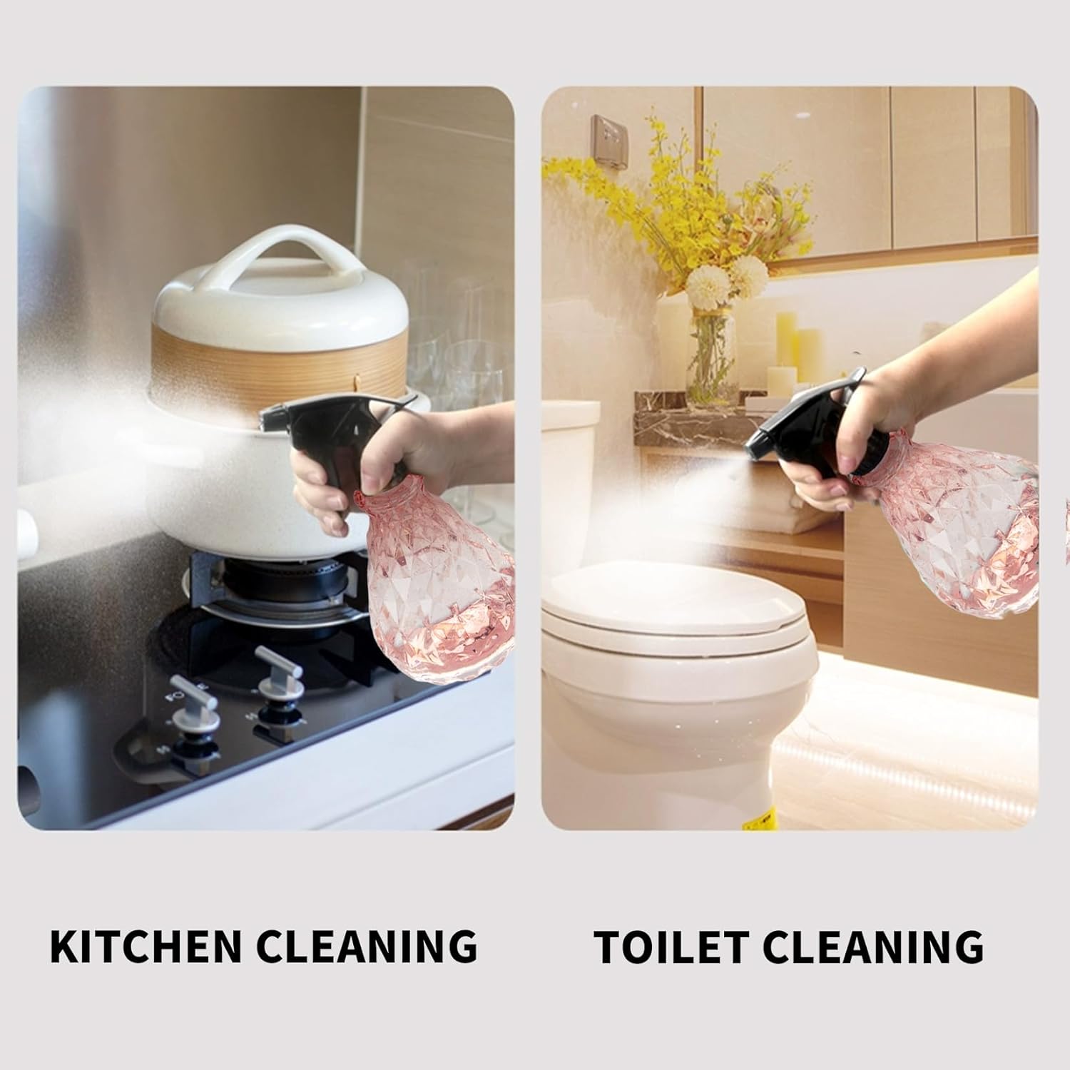 - Ergonomic Design: Designed with the ergonomic push head, the spray head is easy to press and room for your fingers. The plastic spray bottle fits firmly in your hand, easy for everyday use.
