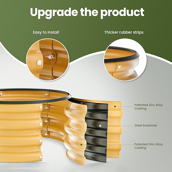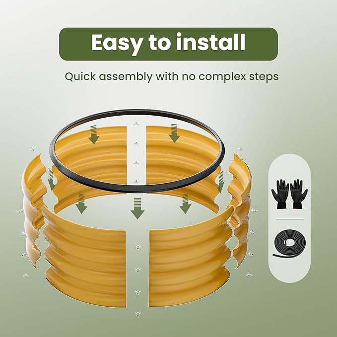 ZXZYHFTY Round Galvanized Raised Garden Bed kit,Yellow Outdoor Garden Raised Planter Box, Round Large Metal Raised Garden Beds for Vegetable 2 * 2 * 1ft 2 Pcs