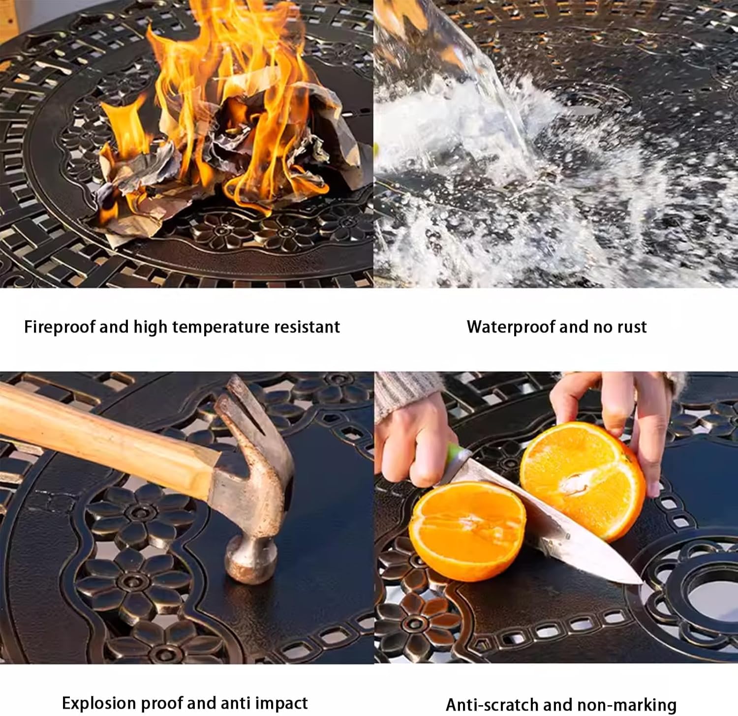 - 【Comfortable design】The outdoor dining table is designed with vintage openwork carving pattern pattern and has a finely polished smooth edge that adds comfort to the table design, this patio table with a built-in 1.57 in umbrella hole can perfectly accommodate your patio umbrella to shield you from sun or rain(Warm Tips: Tile tables do not have umbrella holes, please confirm acceptance before ordering)