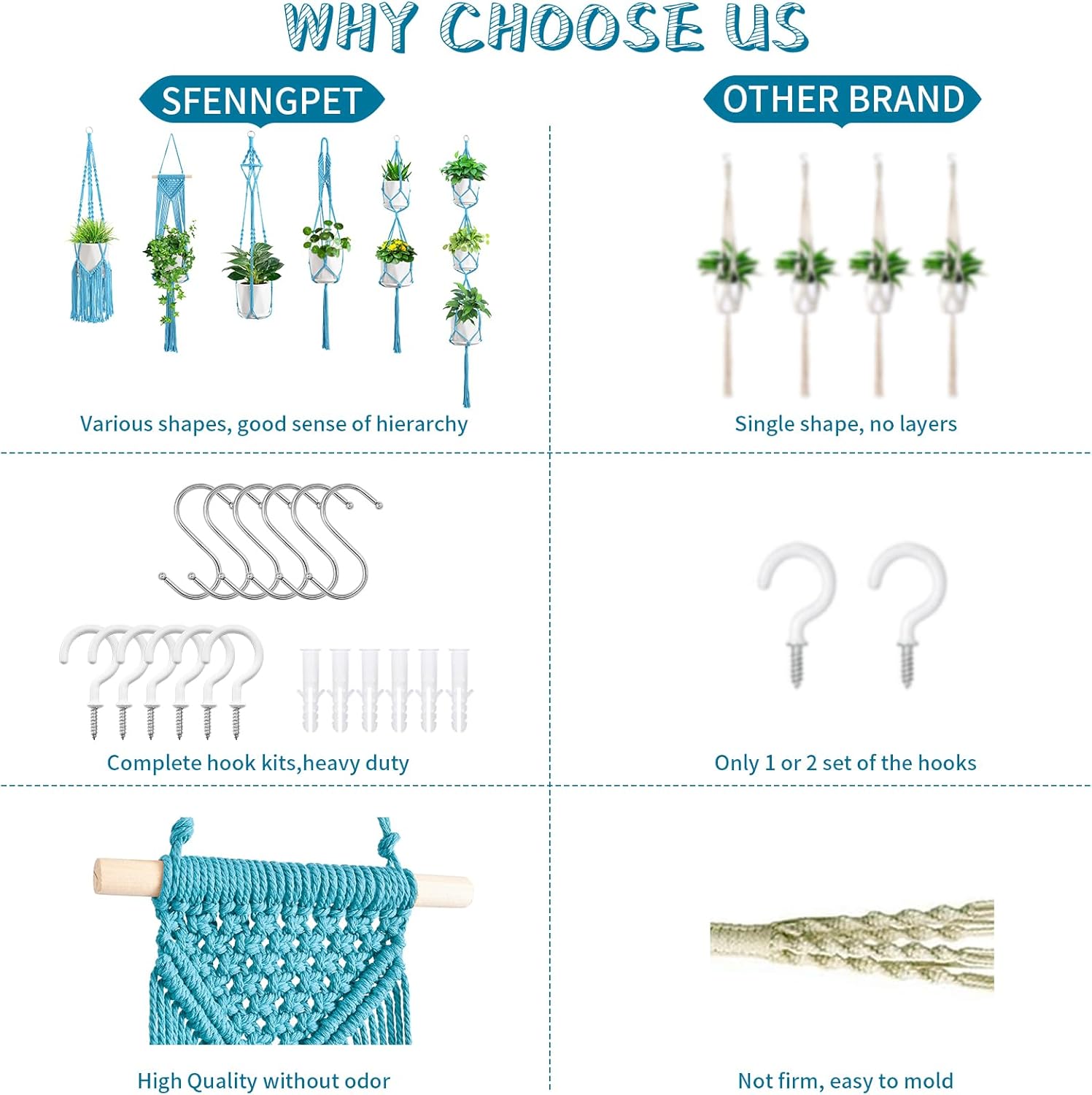 - EASY INSTALLATION: You only need to expand the four leg strings and place the flowerpot in the middle of the joint, and then you can hang it in the most favored spot on a ceiling hook or S-hook. And decorated with any accessories you like, hang indoor pots wherever you want