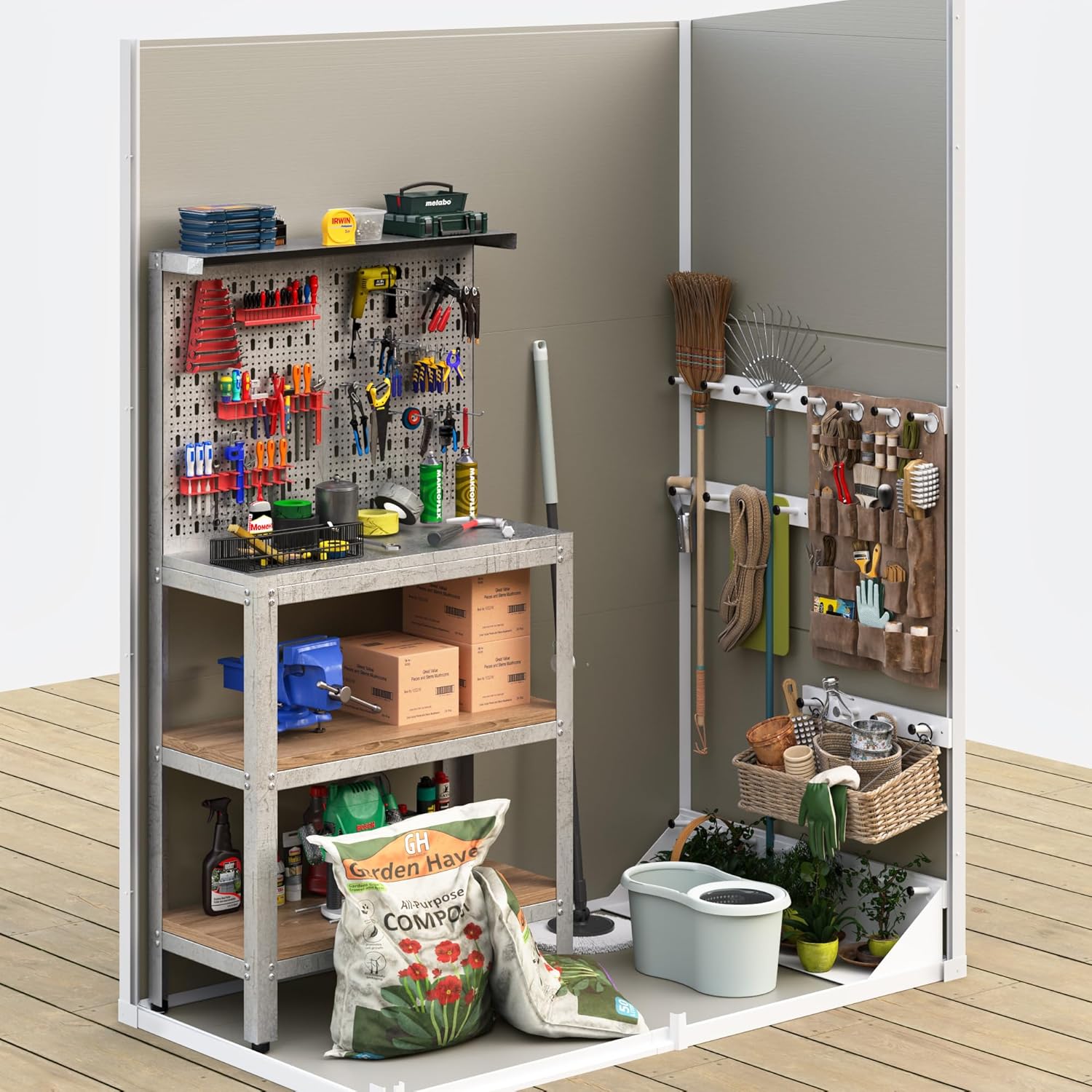 - STURDY FLOOR AND WINDOW: Equipped with a sturdy floor, our outdoor storage cabinet effectively prevents moisture from seeping into the structure, safeguarding your belongings from potential damage caused by dampness, mold, or rot. The window design facilitates ventilation and natural light. It allows the visibility of tools from the outside and enhances the aesthetics of the shed
