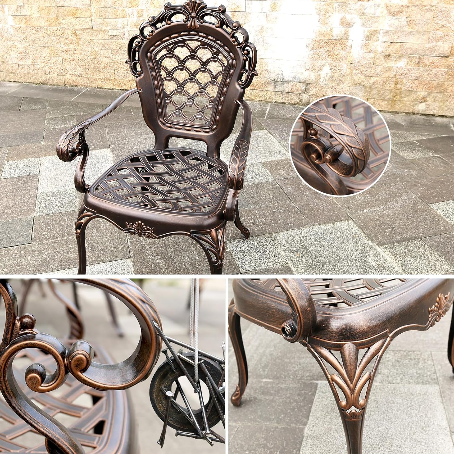 - All weather materials: Made of sturdy cast aluminum with a water-resistant and fade-proof finish. Our patio benches bistro chairs is durability and sunproof, these all-weather features will allow you to use the chairs for a long time
