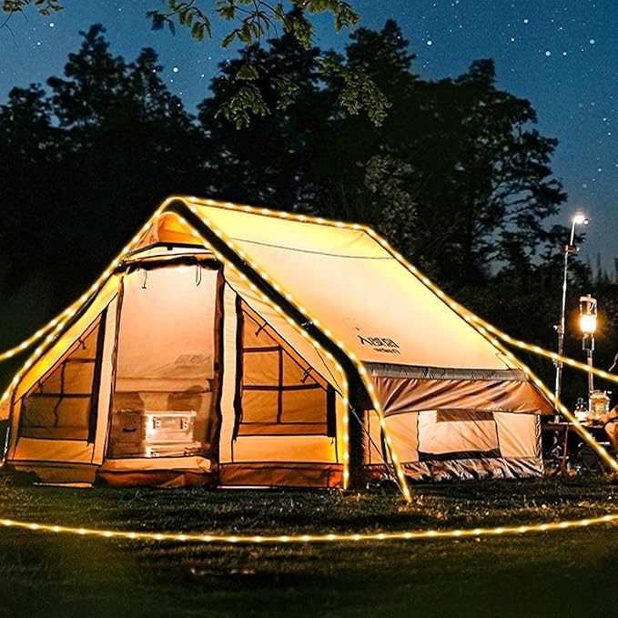 - IP 65 Waterproof: This camping decorations lights comes with PVC protection tube. IP65 waterproof ensure the safety of using even raining, snowing. (NOTE: The plug part is not waterproof). Perfect for outdoor and indoor decorations.