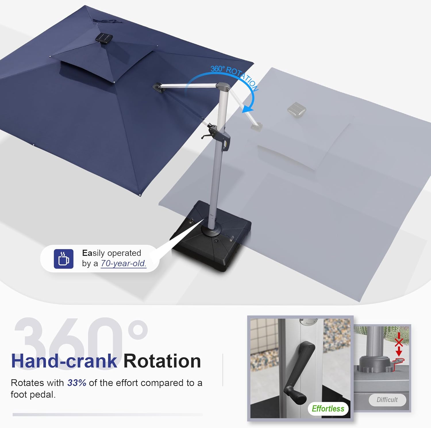 PURPLE LEAF 12 Ft Double Top Patio Cantilever Umbrella Outdoor Solar Powered LED Square Offset Large Garden Umbrella, Navy Blue