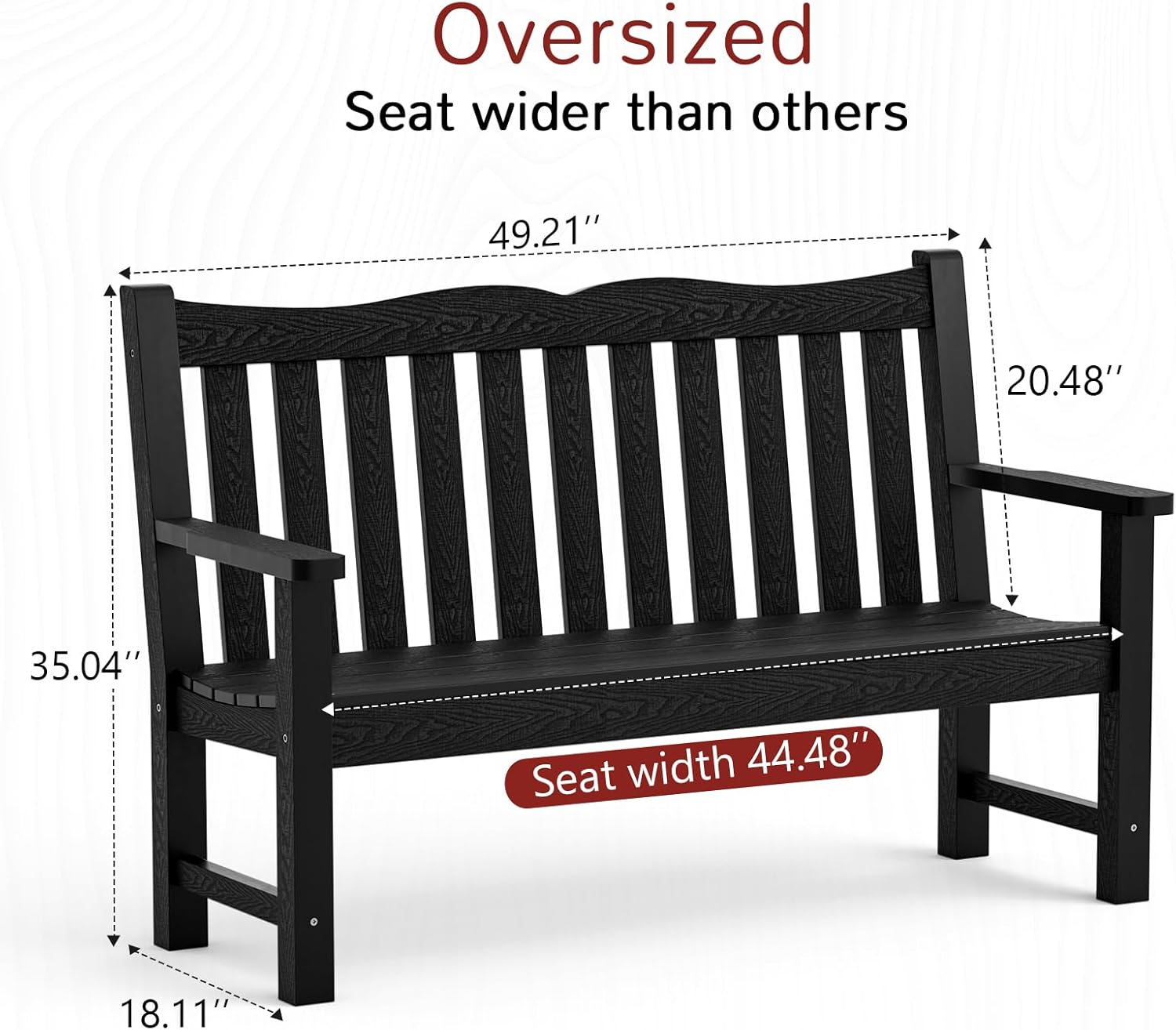 - 【Outdoor Furniture Set】Includes 1 black outdoor bench and 2 black outdoor chairs.