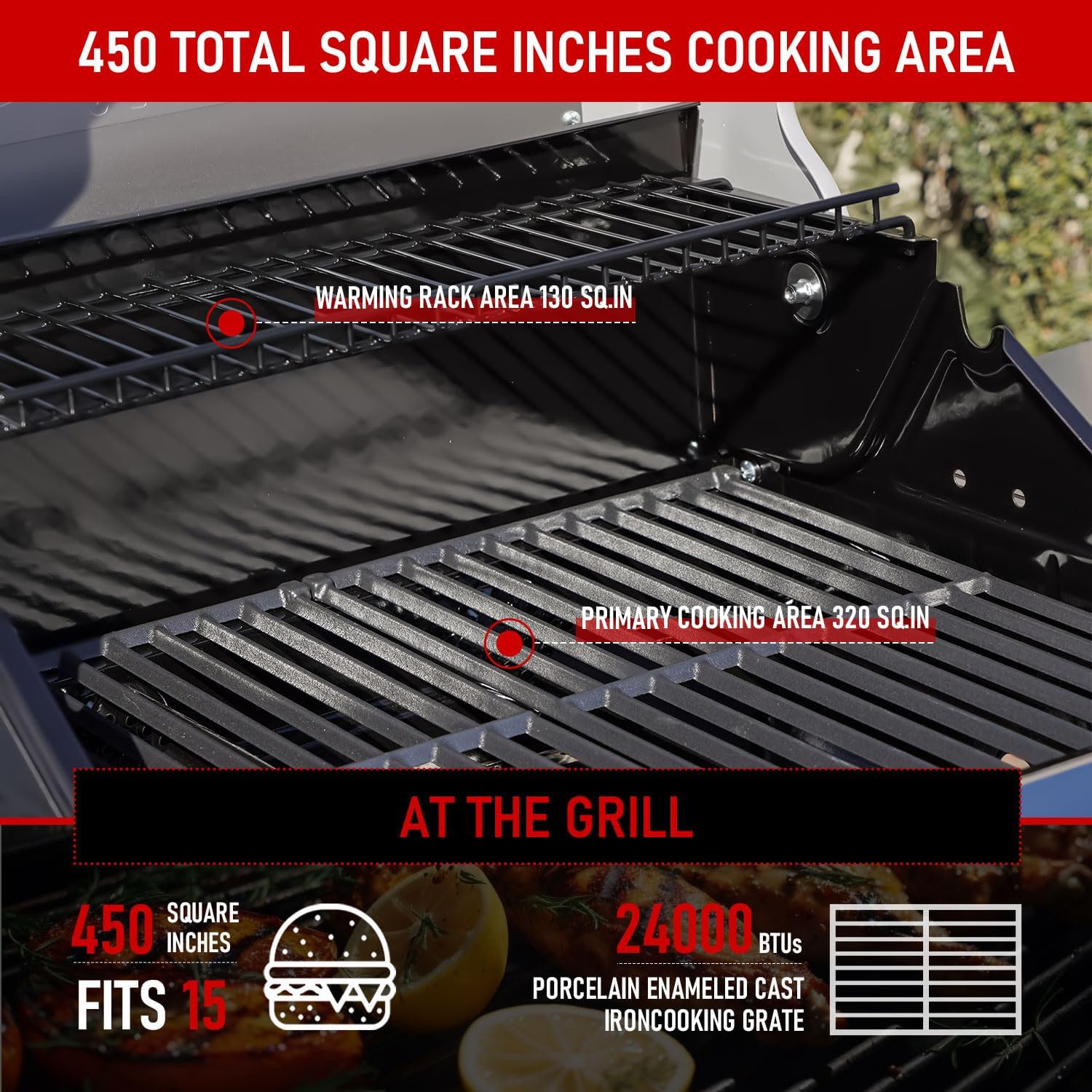 - Easy-Clean Enamel Cast Iron Grates: Featuring high-quality enameled cast iron cooking grates that are easy to clean, this propane gas grill distributes heat evenly for better cooking results. The durable coating resists chipping, while the matte finish adds a premium touch.