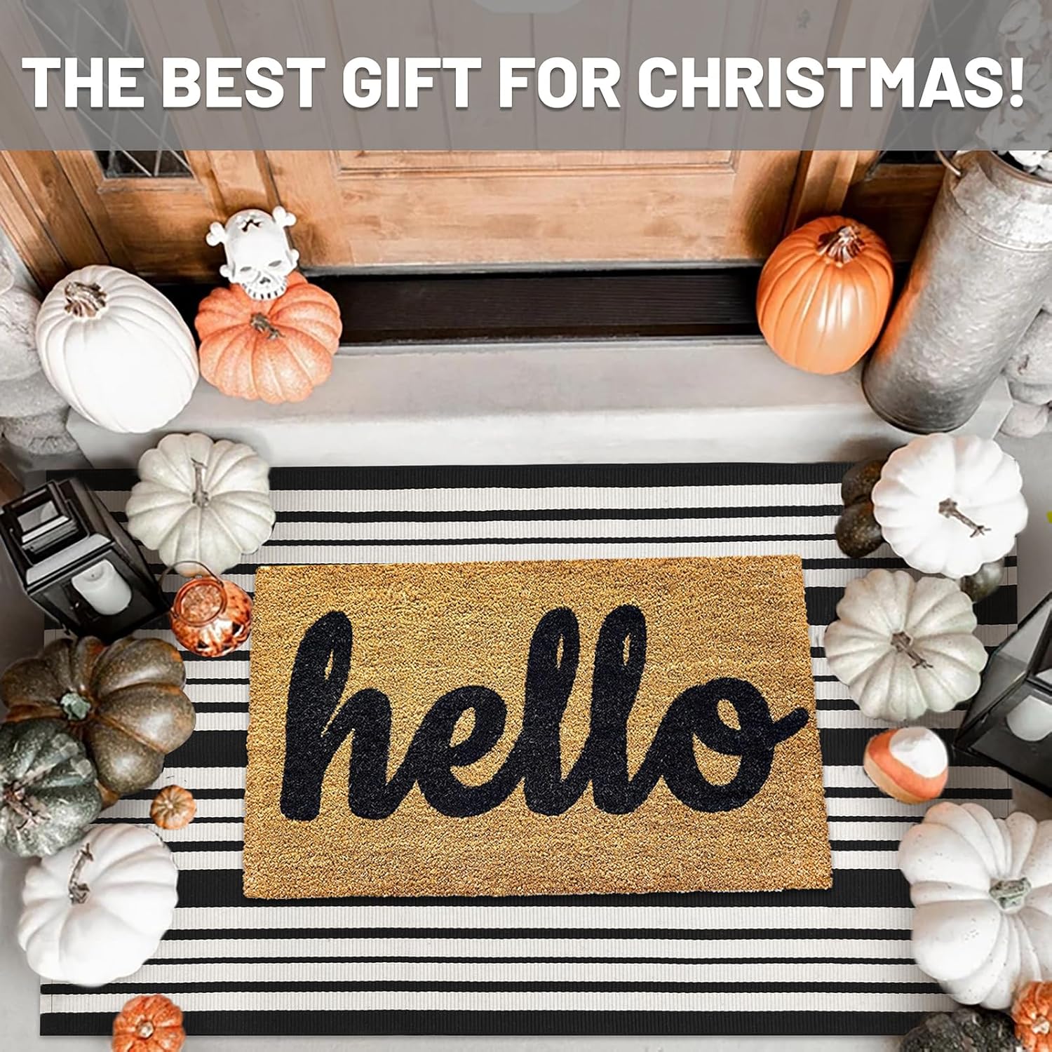 IOHOUZE Black and White Striped Rug 3'x5' Front Door Rugs Outdoor, Washable Area Rug for Front Porch, Spring Summer Doormats Outdoor Indoor, Cotton Rugs for Entryway Porch Entrance