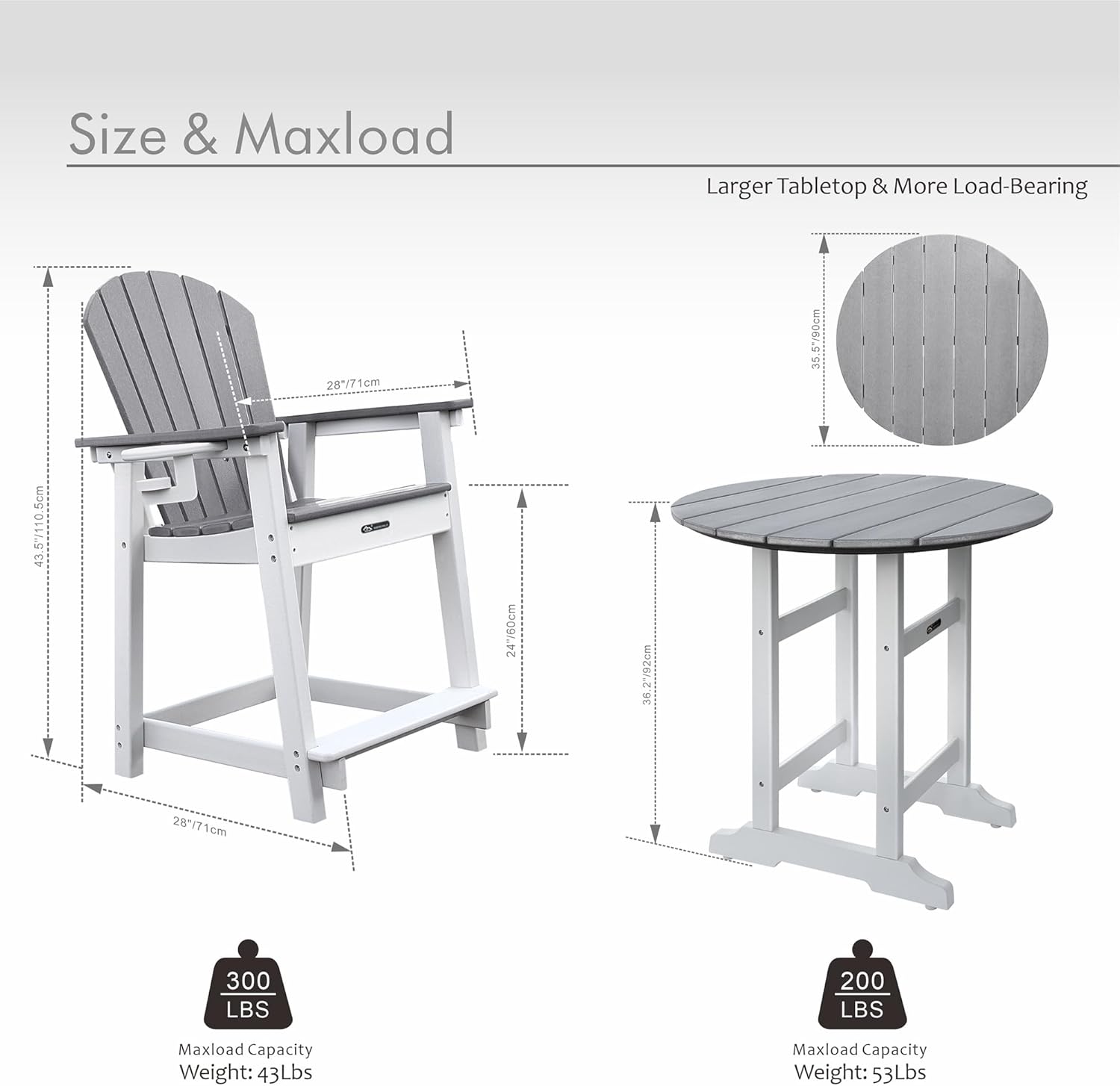 - HIGH QUALITY: HDPE's excellent weather resistance and fine craftsmanship, smooth edges, no burrs, the table top and connecting positions are fixed with screws to ensure the stability of the table.
