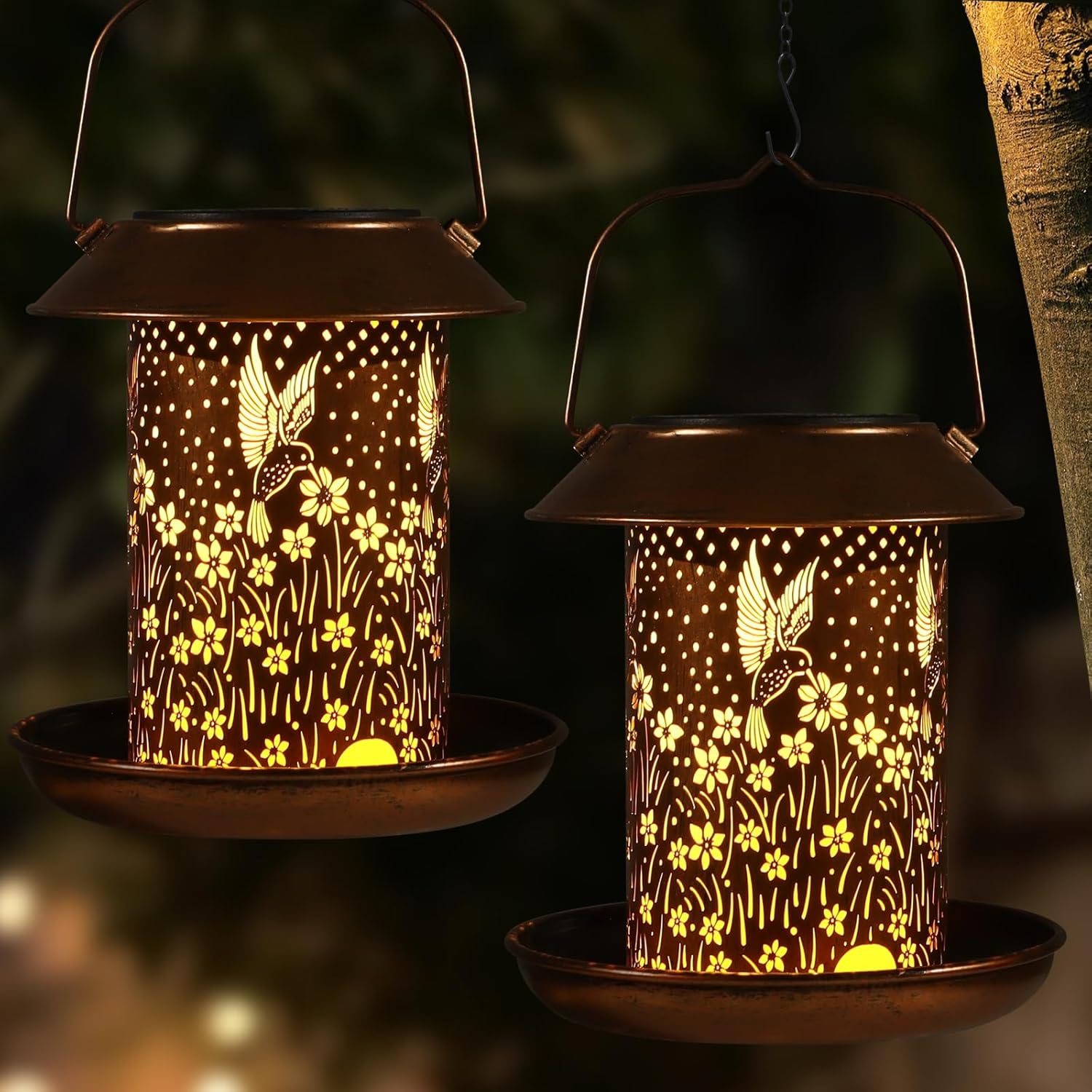 Bird Feeders for Outdoors Hummingbird Solar Lanterns Outdoor Waterproof Garden Decor Gifts for Women Mom Grandma Metal Solar Decoration Outside LED Lanterns for Yard, Patio, Lawn, Pathway(2 Pack)