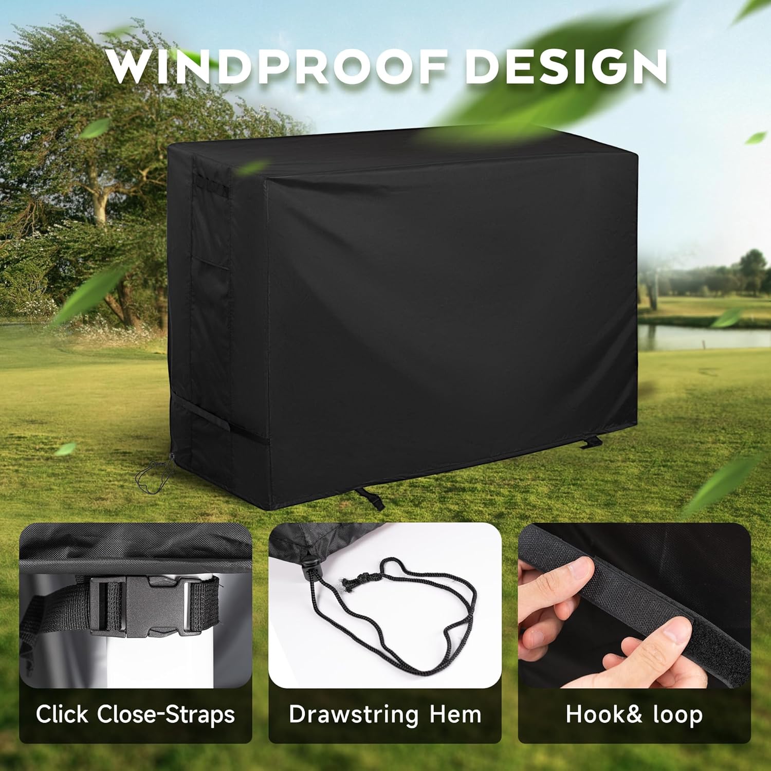 - FIT & SECURE – Drawstring and click close-straps allow you to easily adjust the grill cart for a tight and custom-like fit. Four buckles can keep the cover in place and prevent the cover from being blown off on windy days