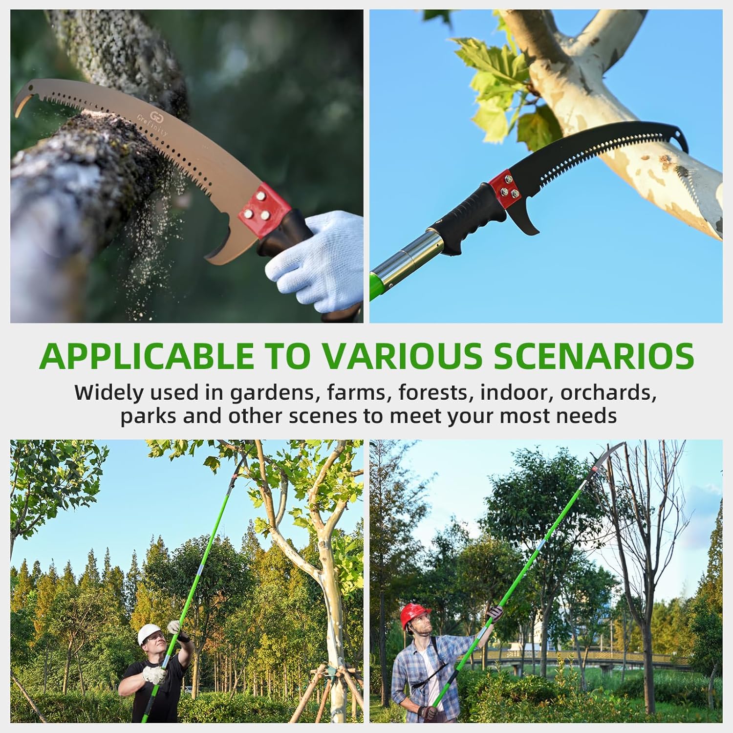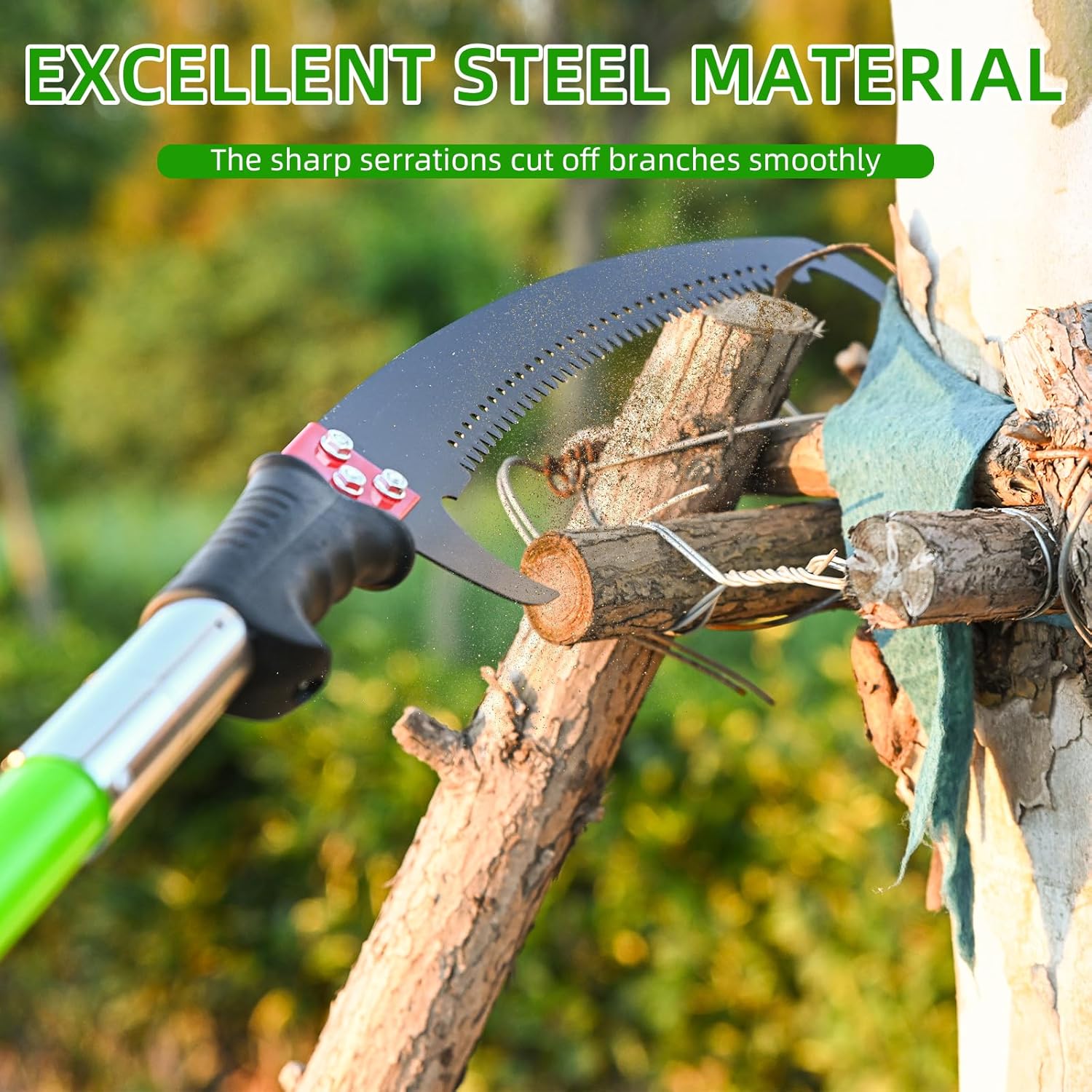 - Multi-Functional Trimming Tool: The detachable design allows easy assembly with 8 reinforced fiberglass sections. You can adjust the length from 7.8 feet to 27 feet depending on the task at hand. It can also be used as a handheld saw for trimming lower shrubs and branches.