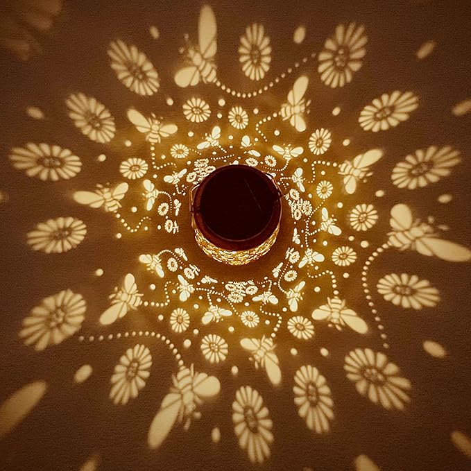 - Graceful Decorative Design - The retro appearance, with gold copper color and hollow out metal veneer, the solar outdoor lanterns casts bright and warm light in darkness, accompanied by gorgeous and graceful bee patterns, adding a beautiful atmosphere to the surrounding environment.
