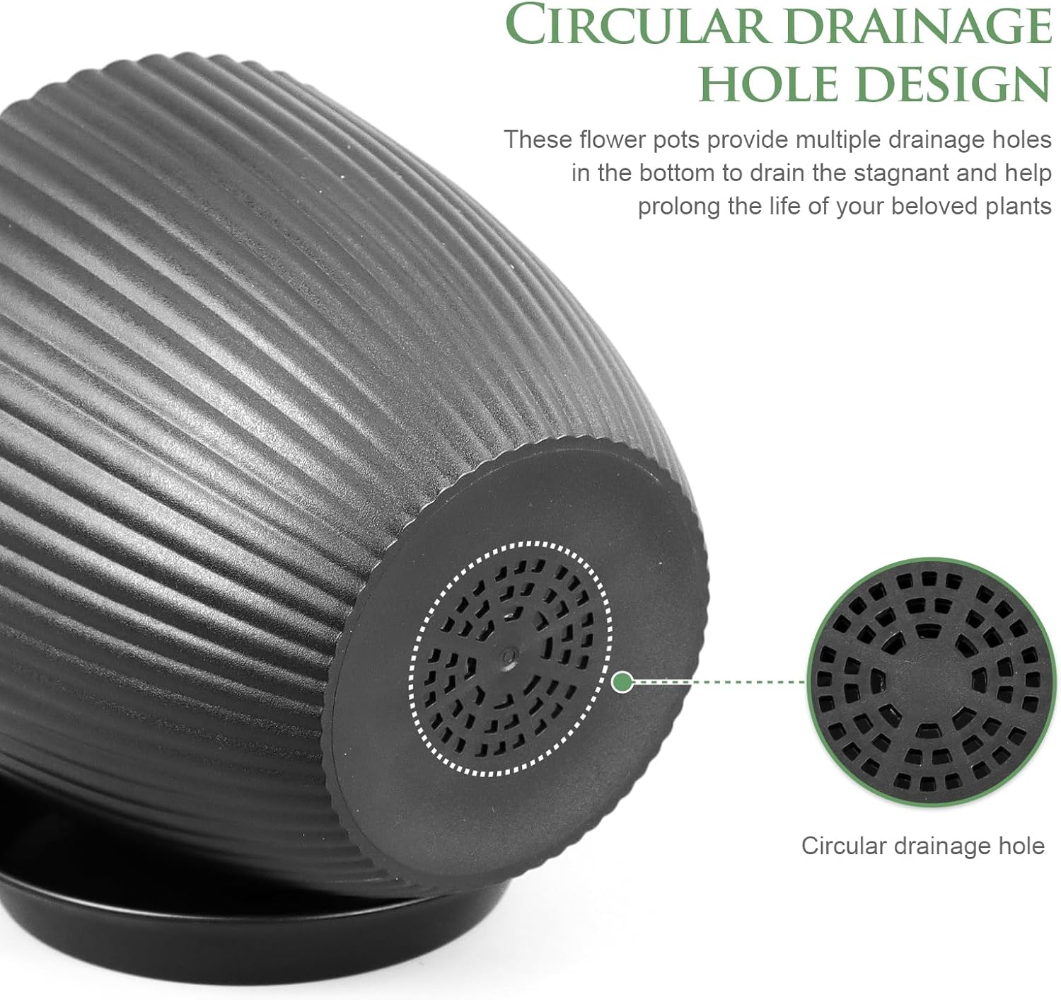 - 【Drainage Holes and Trays】Each plant pot features well-designed drainage holes at the bottom to ensure proper water flow. And comes with matching saucers to catch excess water, keeping your surfaces clean and dry.
