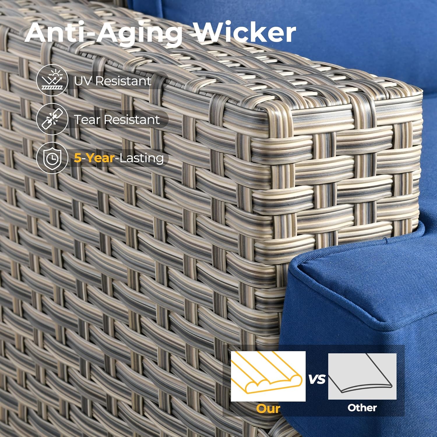 HOOOWOOO Outdoor Sectional Patio Furniture Set,8 Pieces Wicker Conversation Sets,Extra Deep Out Door Sofa Outside Furniture Couch with Swivel Chairs Ottoman,Navy Blue
