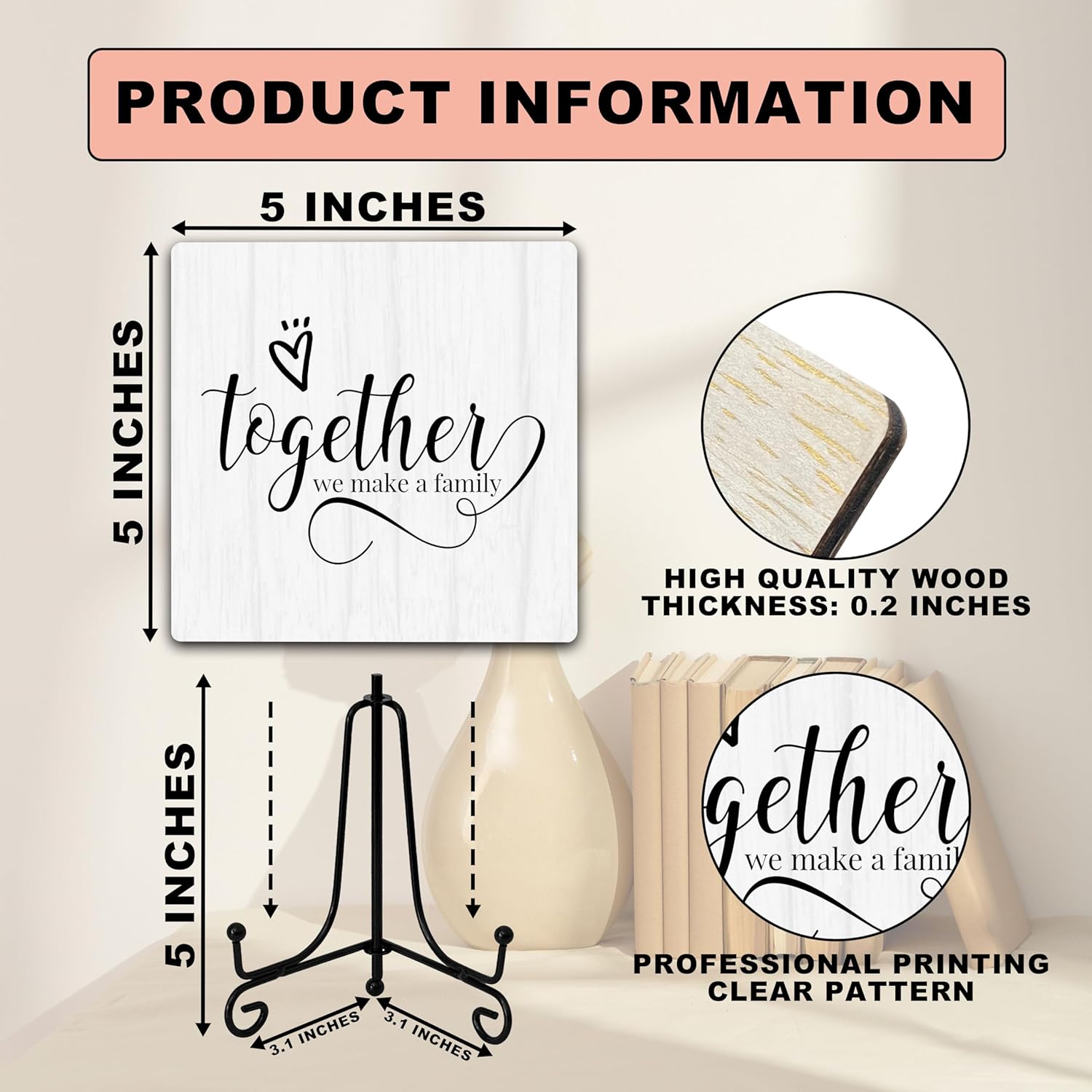 Eronm Desk Sign, Home Office Decor, Together We Make a Family, 5 inches Square Wood, Iron Sign, Perfect for Home, Office, Gifting