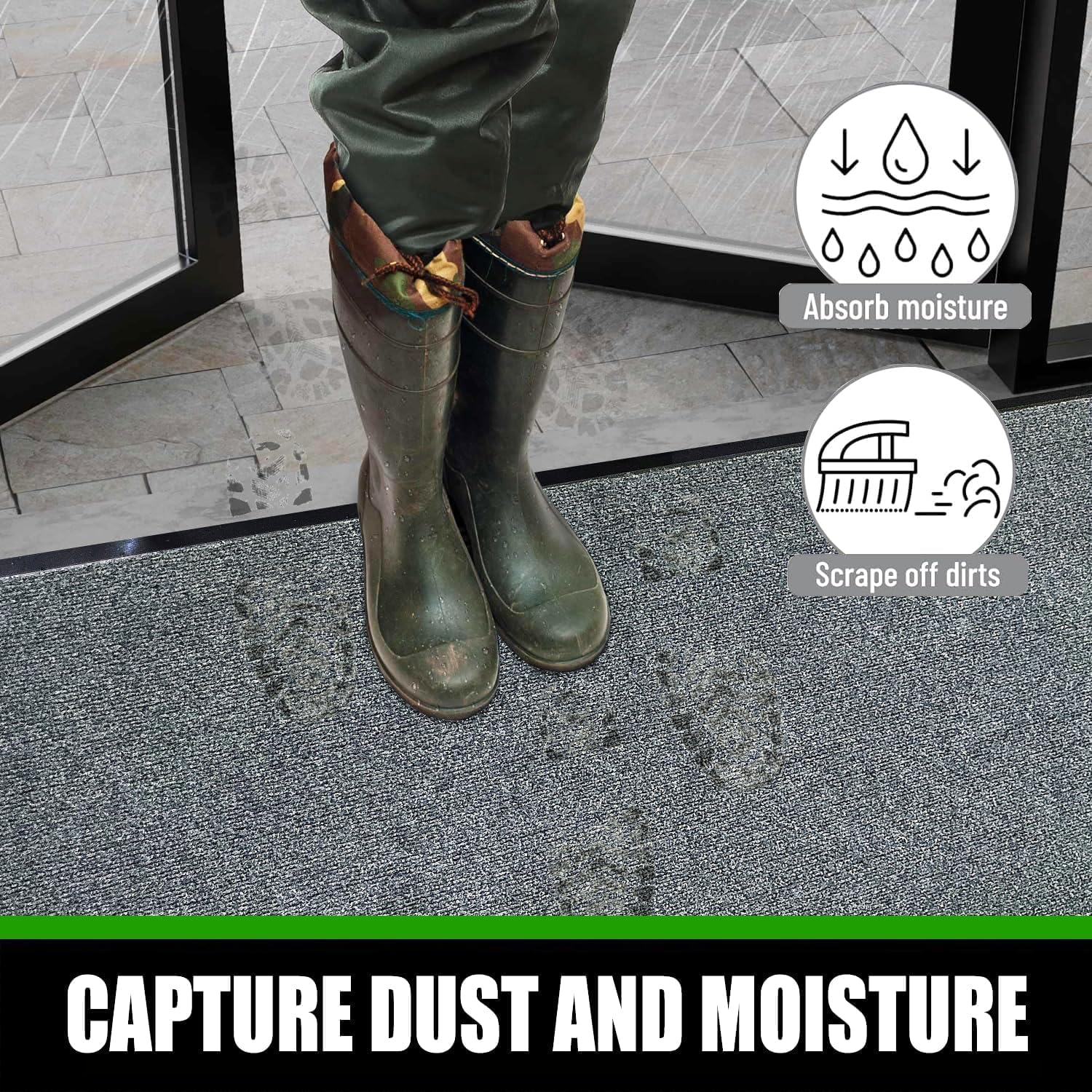 - Rubber Backing for Stability: The Rubber backing not only prevents moisture from reaching the floor but also helps keep the mat in place. This feature is important for safety, as it reduces the risk of slips, trips, and falls.