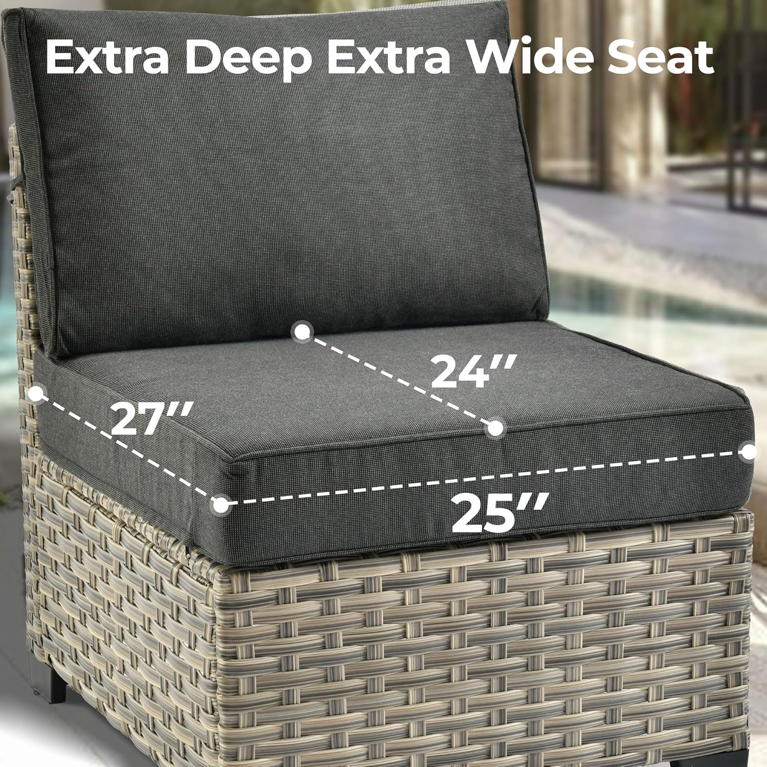 - Extra Deep Seat: 27" extra deep cushion with 24"extra seat depth for tall or big man with free posture. No more restricting yourself in cheaply made small chairs.Sectional Design enables a free combination. Included clips to fix the chairs together