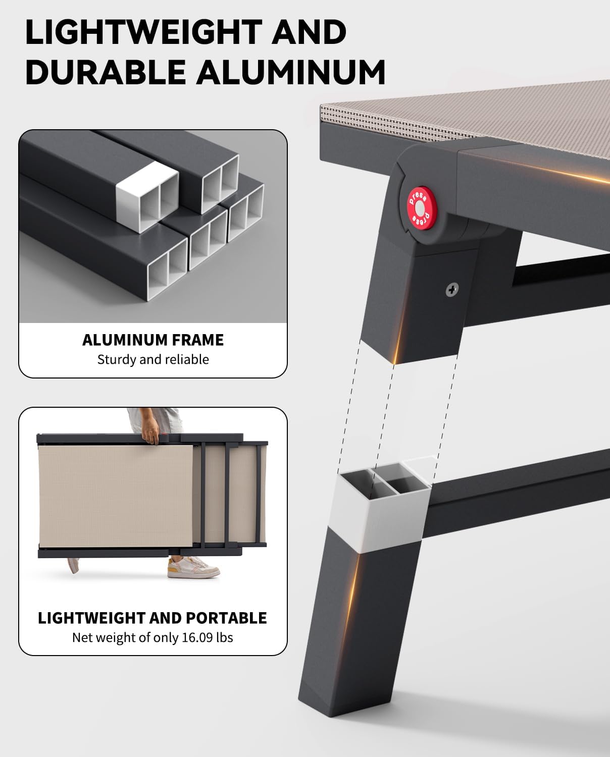 - 【DURABLE & LIGHTWEIGHT】Constructed with a powder-coated aluminum frame, the outdoor patio lounge chair is rust-proof for lasting use. Thickened tube walls make it support up to 400 pounds, catering to most body types. And lightweight design offers effortless portability and comfort for any outdoor adventure