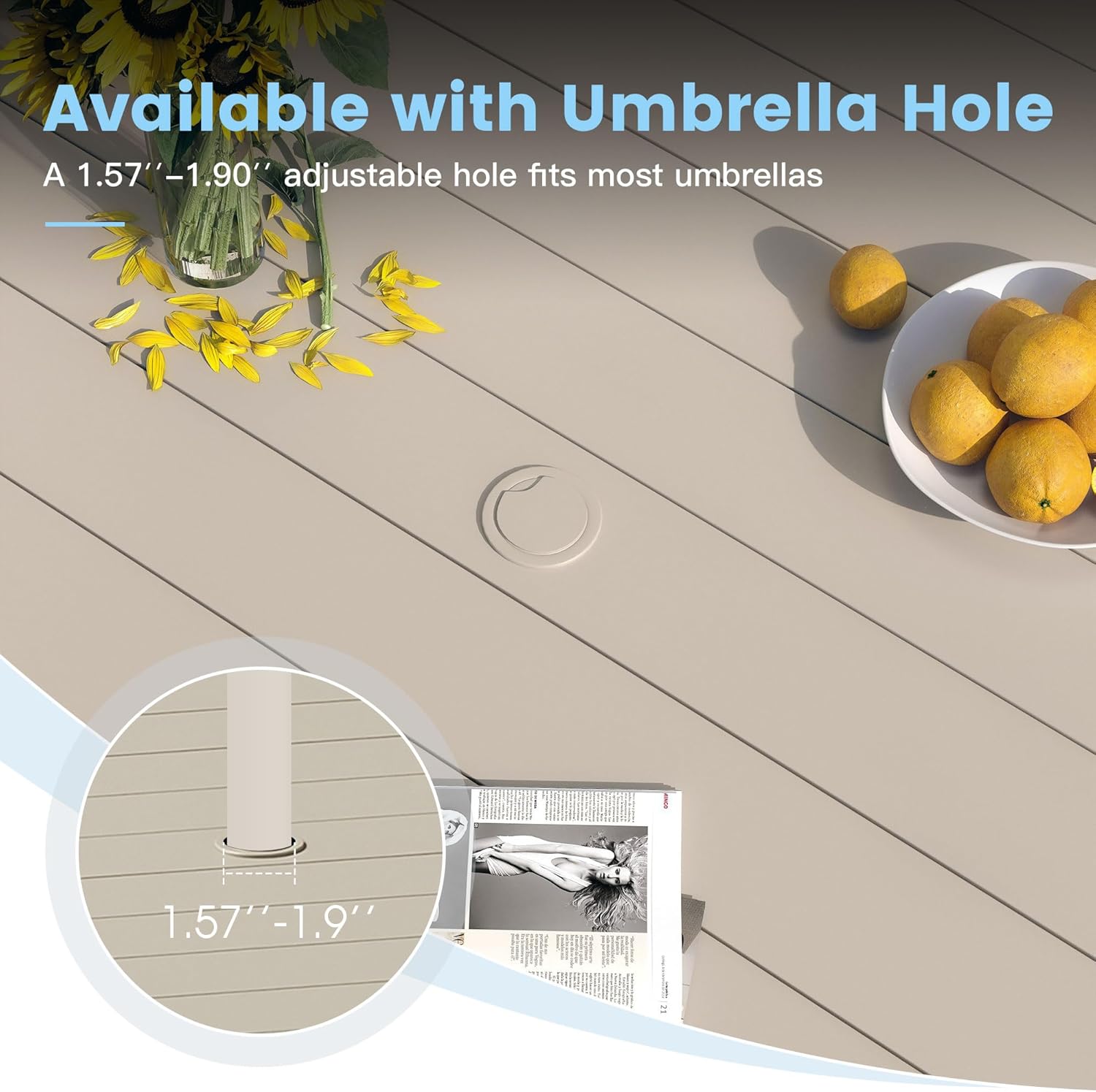- 【Adjustable Umbrell Hole Design】Equipped with a 1.57"-1.90" adjustable umbrella hole, fits most umbrellas and prevents you from sun and rain