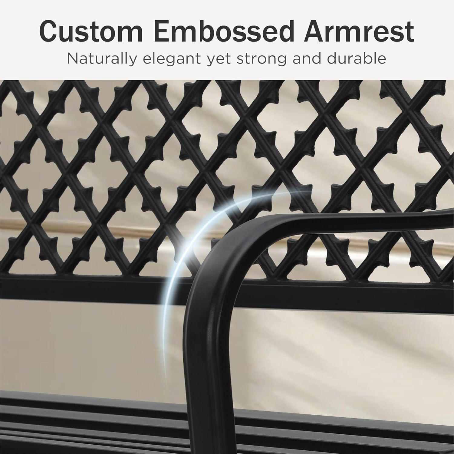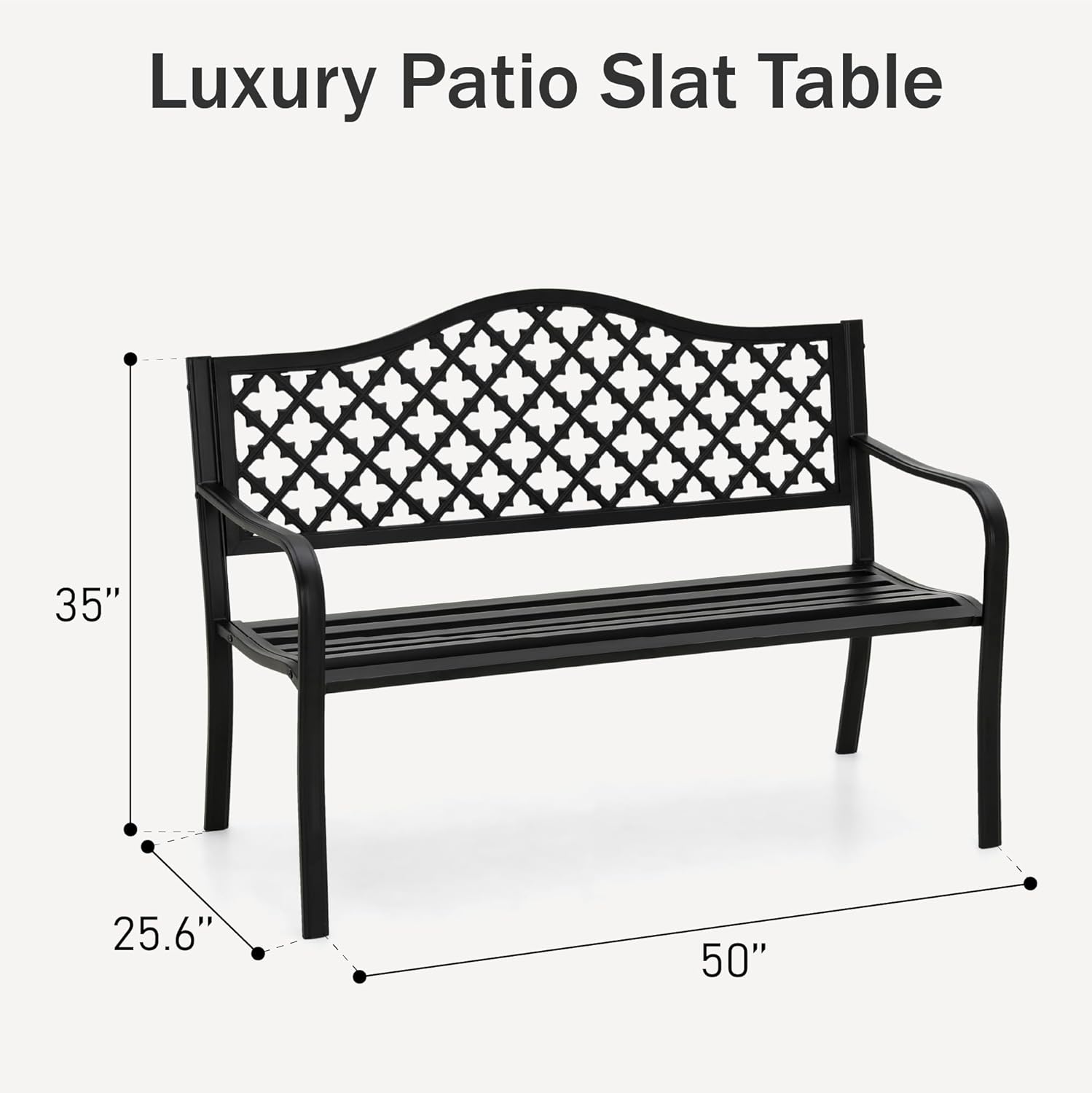 - 【Excellent Design & Perfect Size】The lively and exquisite grid embellishments of the Garden Bench are distributed on backrest fashionable plastic backrest and make whole Metal Bench look beautiful. Not only does the Yard Bench offer comfortable sitting experience but also serve as a good decorative ornament. And the garden bench size perfect for two adults.