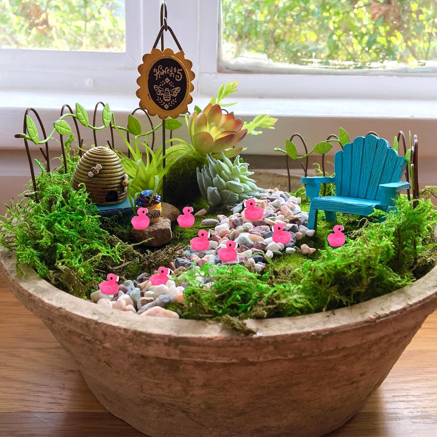 - 【WIDE APPLICATION】 These flamingo ducks have a great attraction to DIY and mini landscape lovers. They are realistic and adorable miniatures. The mini flamingo can be used as a DIY personal decoration, such as mini landscape, dollhouse, fish tank and aquarium decoration, miniature fairy tale garden landscape, cake decoration etc, bringing endless fun to your life.