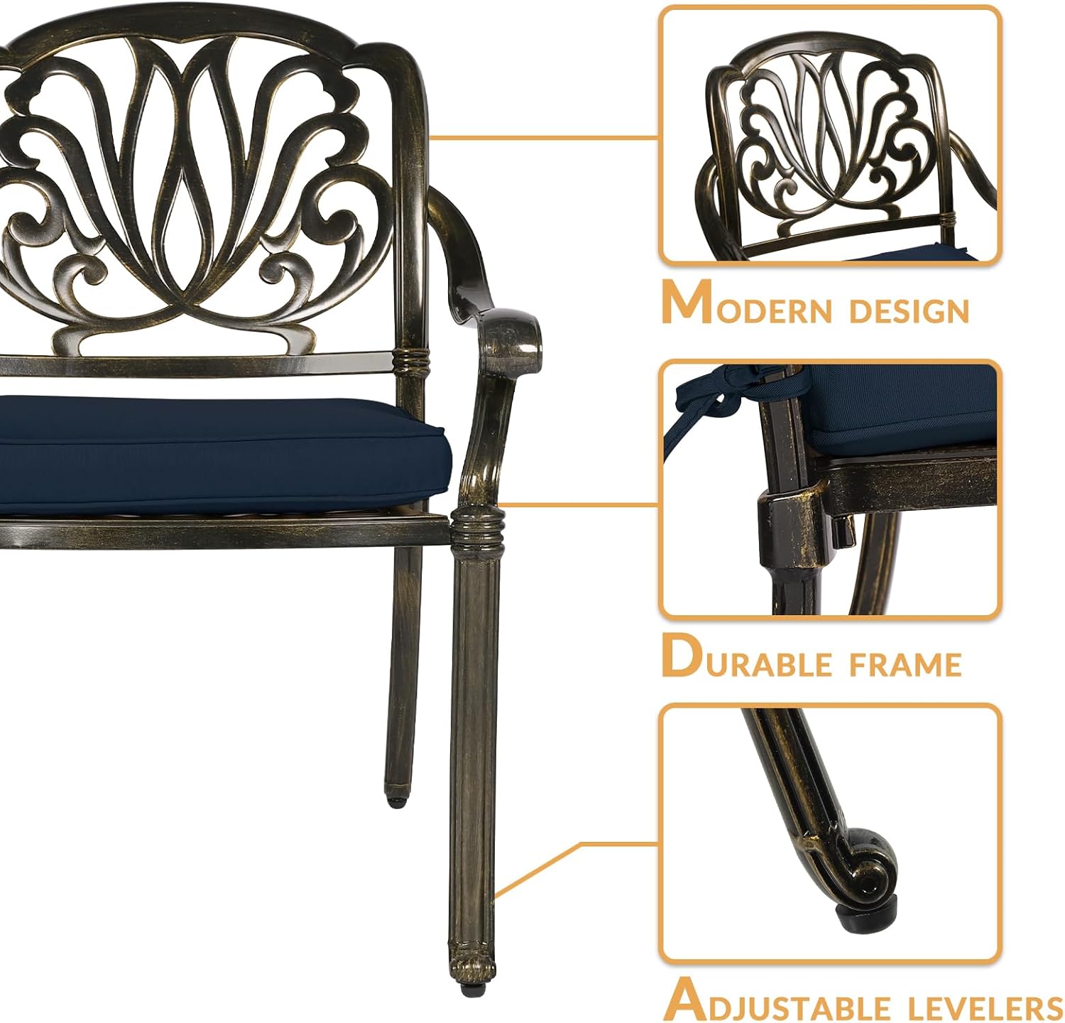 3-Piece Outdoor Patio Dining Set, All-Weather Cast Aluminum Patio Furniture Set for Backyard Garden Deck with 2 Cushioned Chairs and 35.4” Round Table, 2" Umbrella Hole, Navy Blue