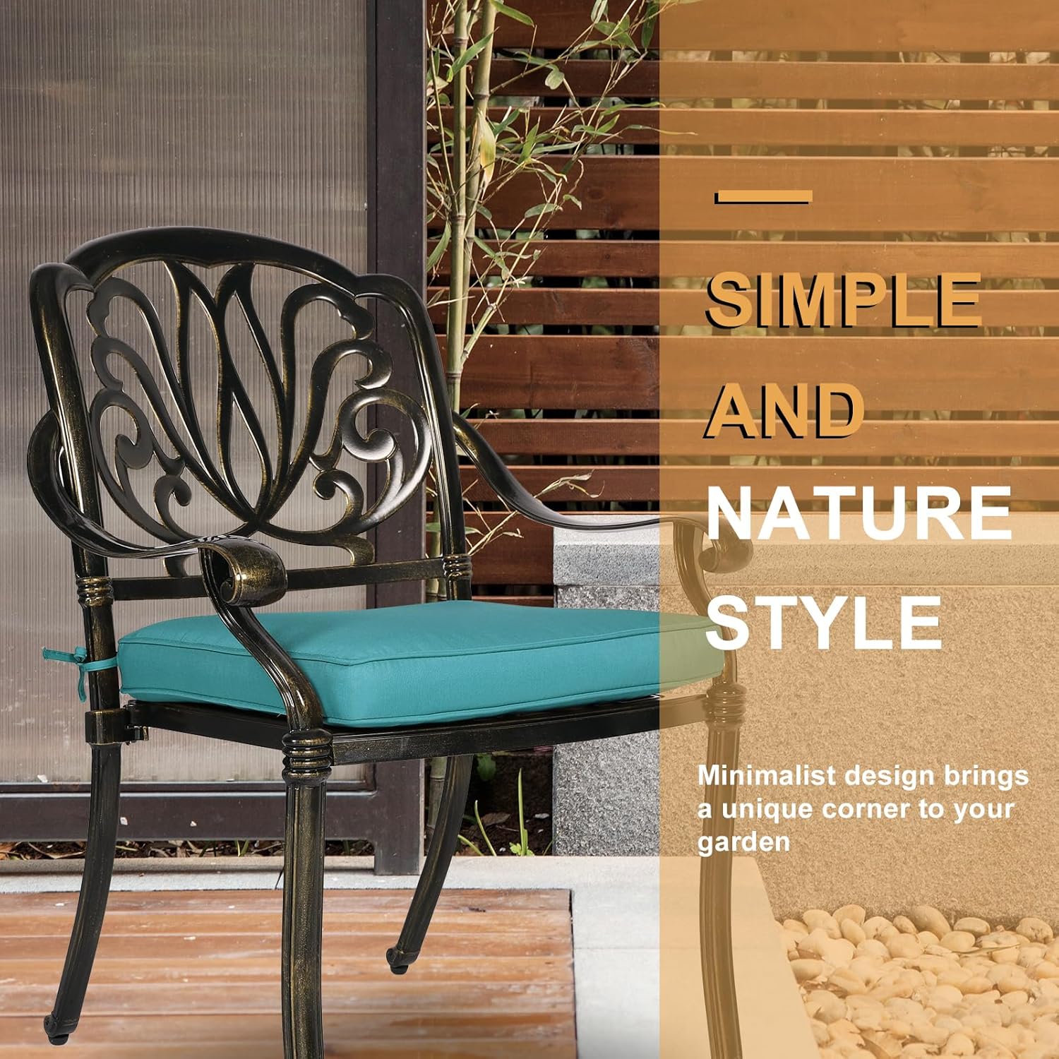 - 【Durable 3-Piece Dining Set】 - Made from cast aluminum for long-term durability. Resistant to rust, weather, fade, crack. This patio set includes 1 round table, 2 chairs, 2 cushions, and they stay in perfect condition regardless of the weather. It's also easier than ever to clean, just use a dry or damp rag to wipe down.