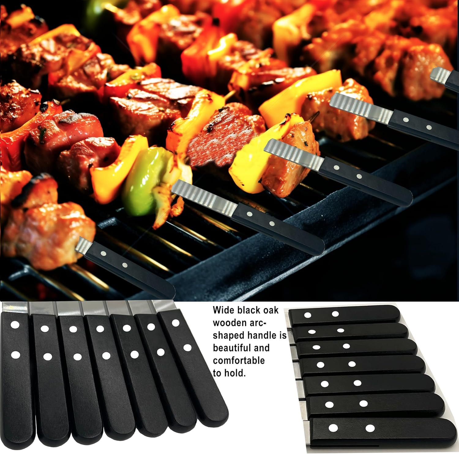 23.6 Inch Long Kabob Skewers, 0.91 Inch Wide, Stainless Steel with Black Wood Handle, 7 Pack