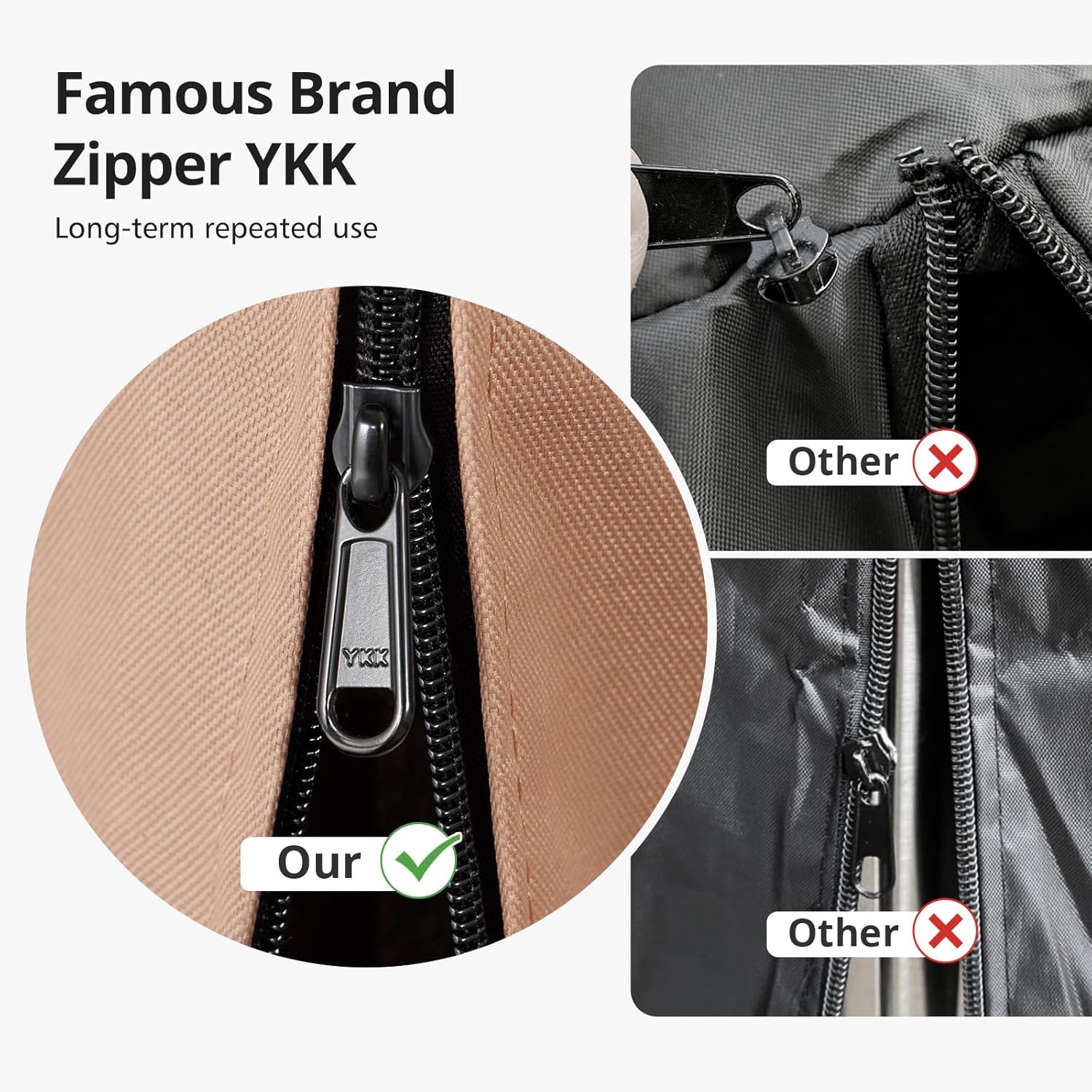 - 【Sturdy and Durable Zipper】Featuring a renowned YKK zipper, our outdoor heater cover guarantees smooth operation and superior durability. This high-quality zipper can withstand extensive use and heavy loads, lasting five times longer than typical zippers, ensuring repeated use over an extended period.