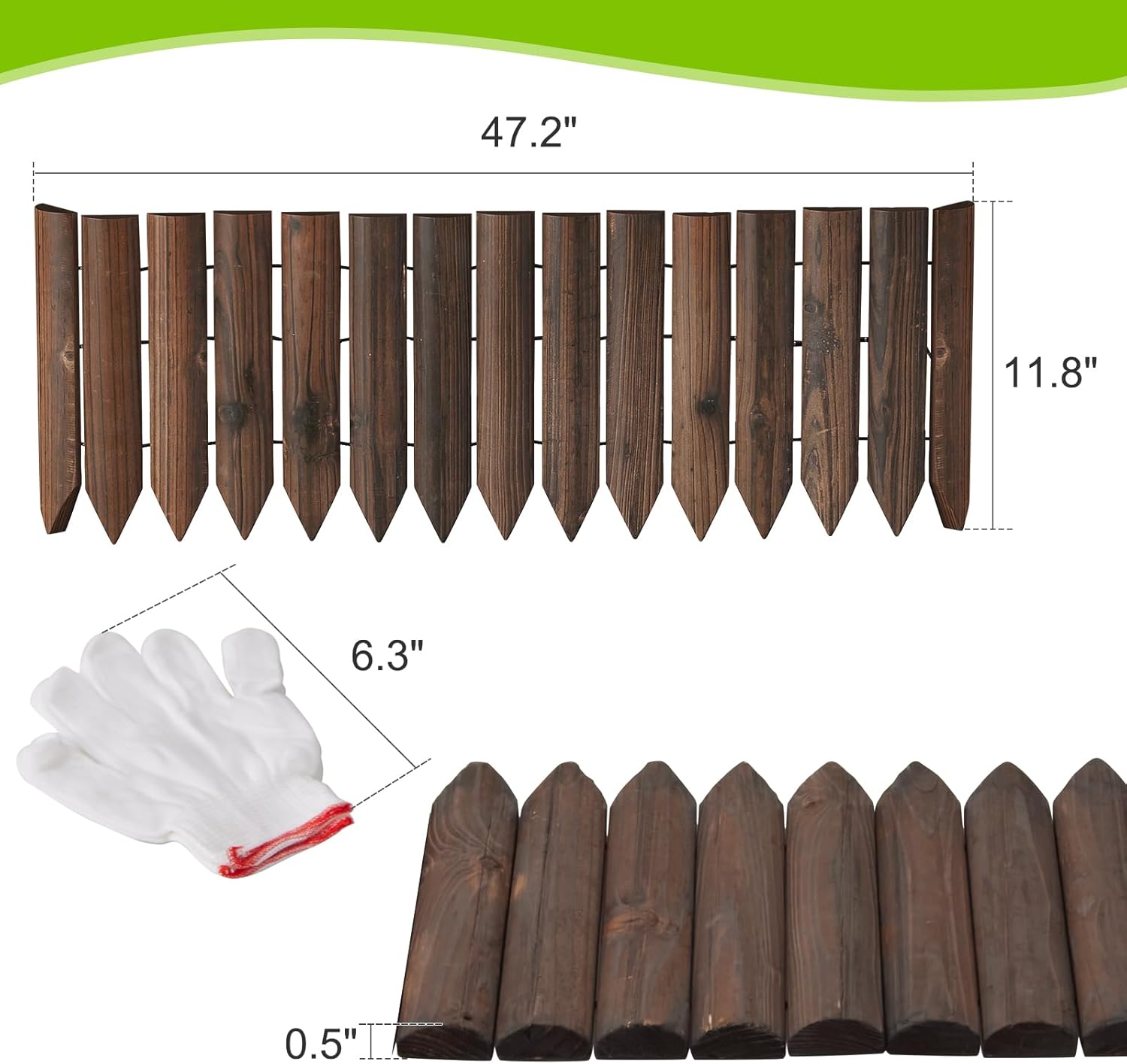 Wood Garden Edging Border Wooden Short Fence Landscape Edging Anti Corrosive Lawn Fence Border with Gloves Decorative Flower Bed Border for Yard Patio Pathway Tree Outdoor-47.2" L X 11.8" H (1PACK)