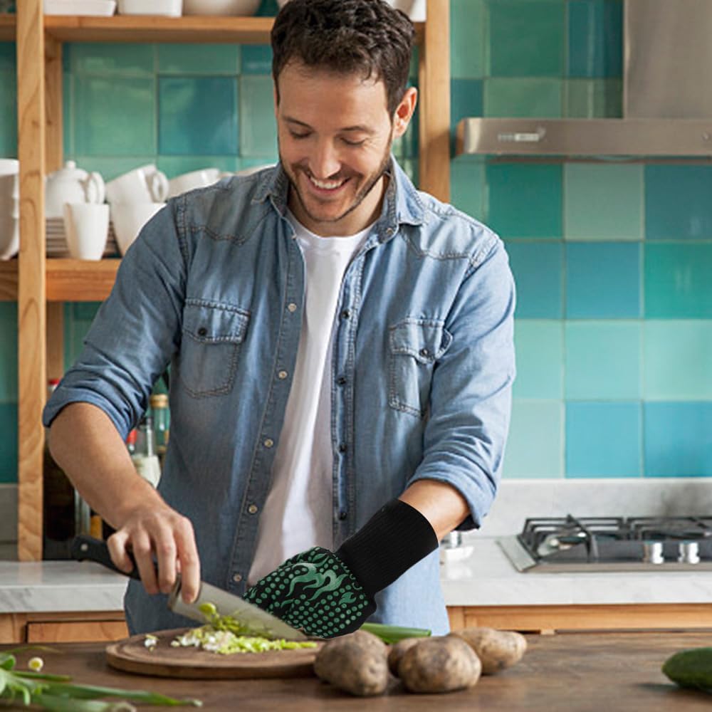 Comsmart BBQ Gloves, 1472°F Heat Resistant Grilling Gloves Silicone Non-Slip Oven Gloves Long Kitchen Gloves for Barbecue, Cooking, Baking, Short, Green
