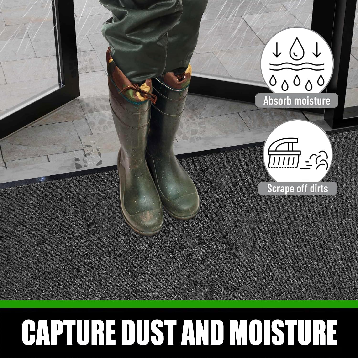 - Rubber Backing for Stability: The Rubber backing not only prevents moisture from reaching the floor but also helps keep the mat in place. This feature is important for safety, as it reduces the risk of slips, trips, and falls.
