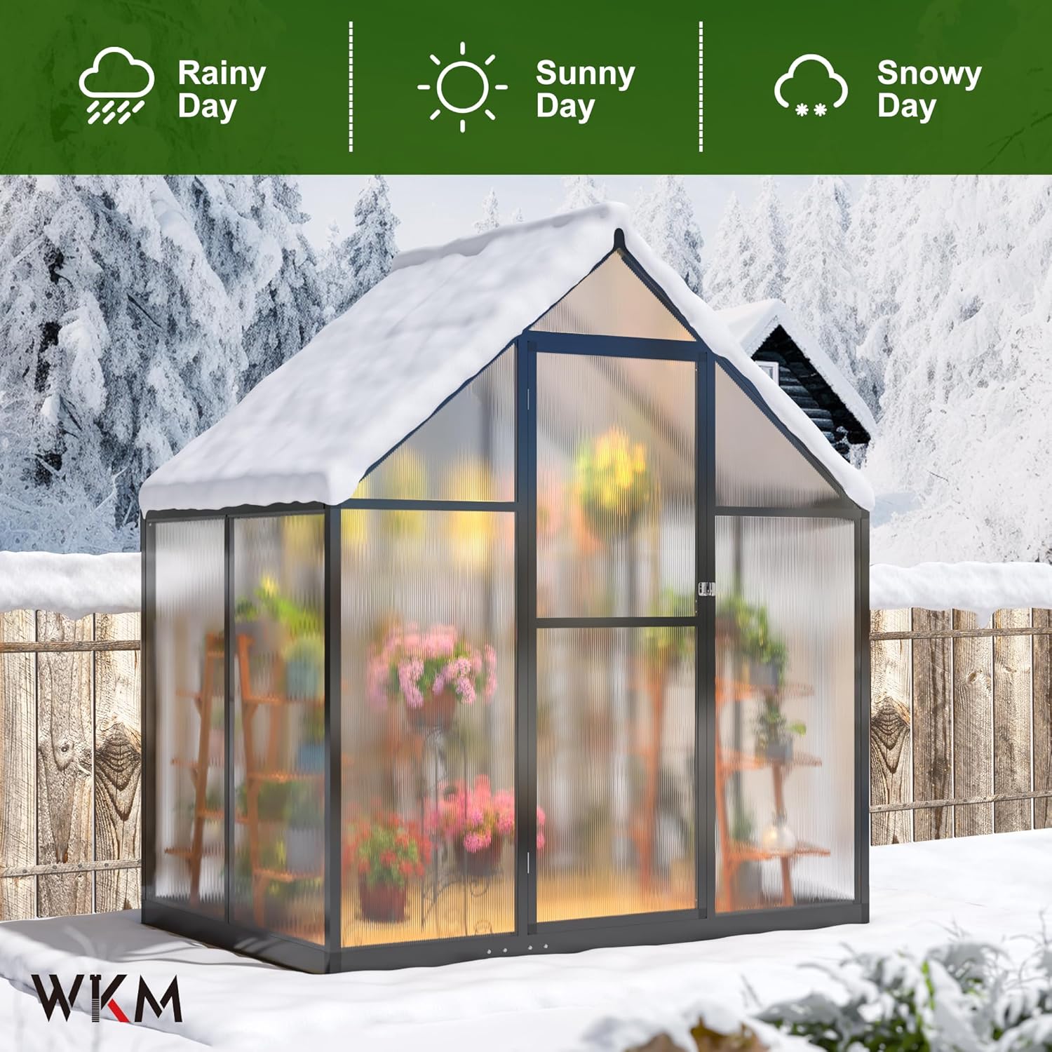 WKM Greenhouse - 5.6x3.7 FT Quick-fit Aluminum Structure with Window Ventilation, Black