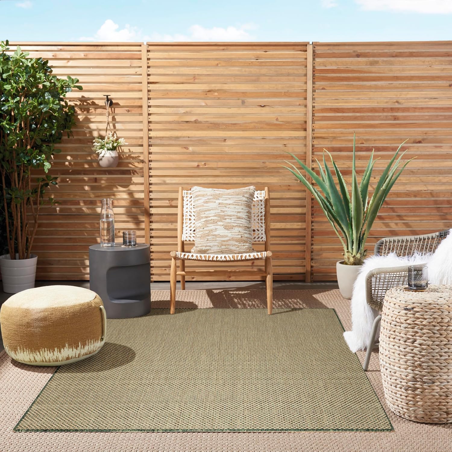 Nourison Home Courtyard Green 5' x 7' Area Rug - Easy Clean, Non Shedding, Bed Room, Living Room, Dining Room, Kitchen (5' x 7')
