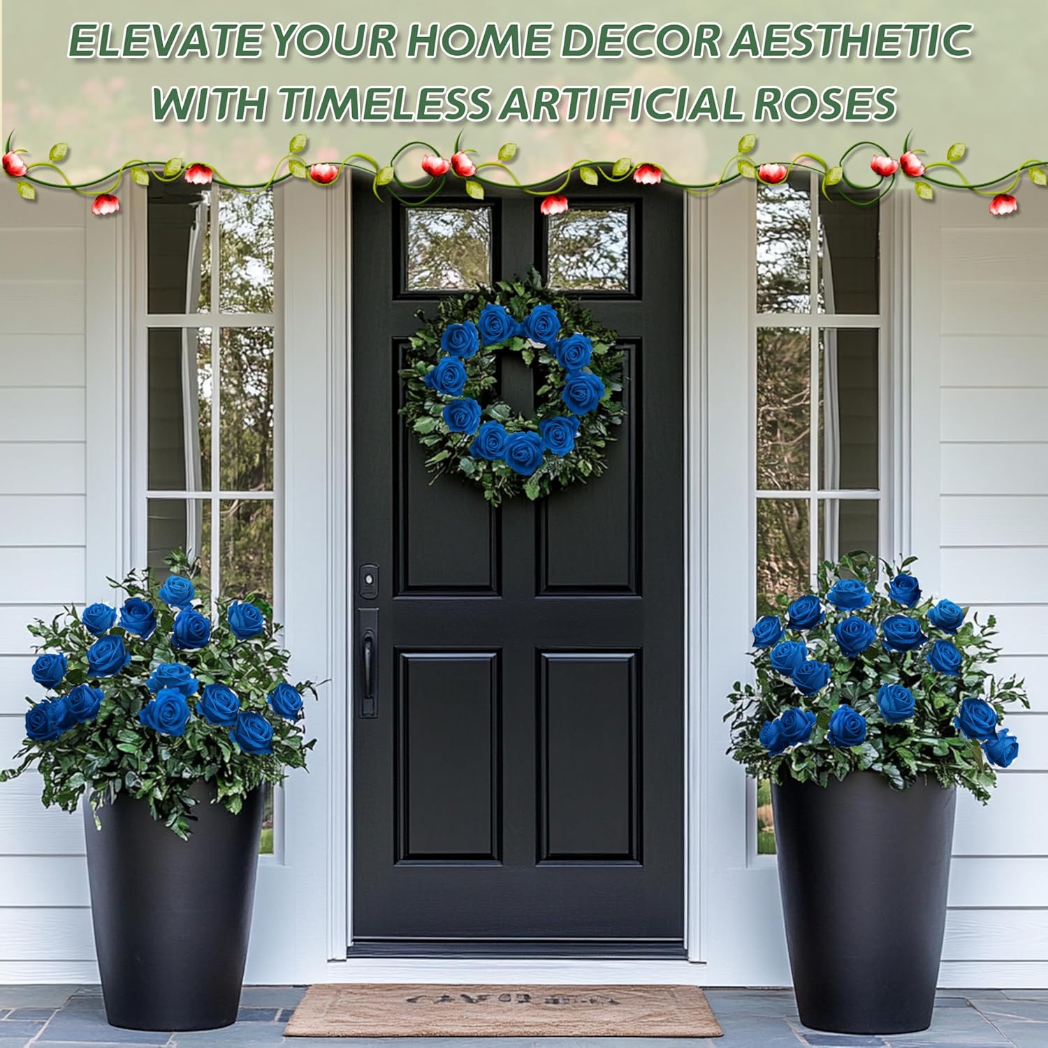 - Realistic Beauty: Crafted from silk petals and leaves, these fake blue roses artificial flowers capture the essence of natural blooms, adding a touch of elegance to any space without the worry of wilting or watering. The sturdy long stems are made of flexible metal wire wrapped in plastic, ensuring durability and easy arrangement, allowing you to bend and adjust them to achieve your desired look without breaking. For a more realistic touch, the stems feature artificial thorns--handle with care