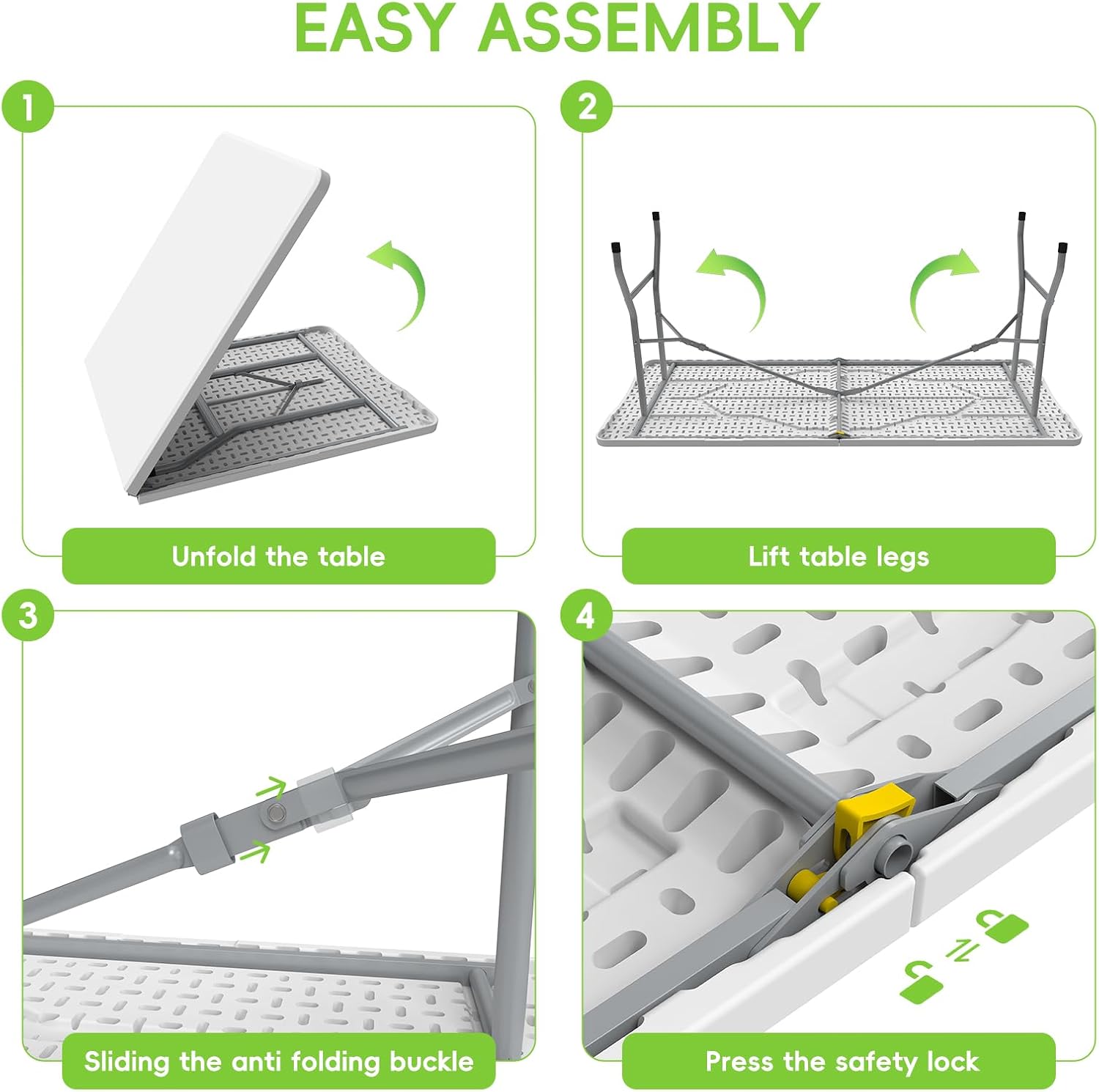 - Portable & Convenient: With a compact, foldable design, this plastic folding table and bench set can be easily transported and stored, making it an ideal choice for on-the-go use and storage